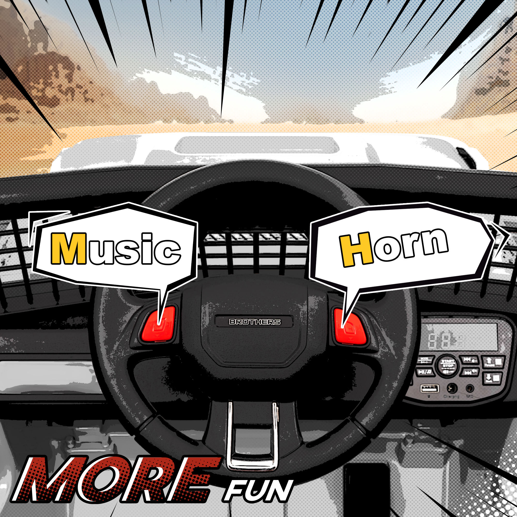 - Includes music, horn and toy safety lights for extra enjoyment