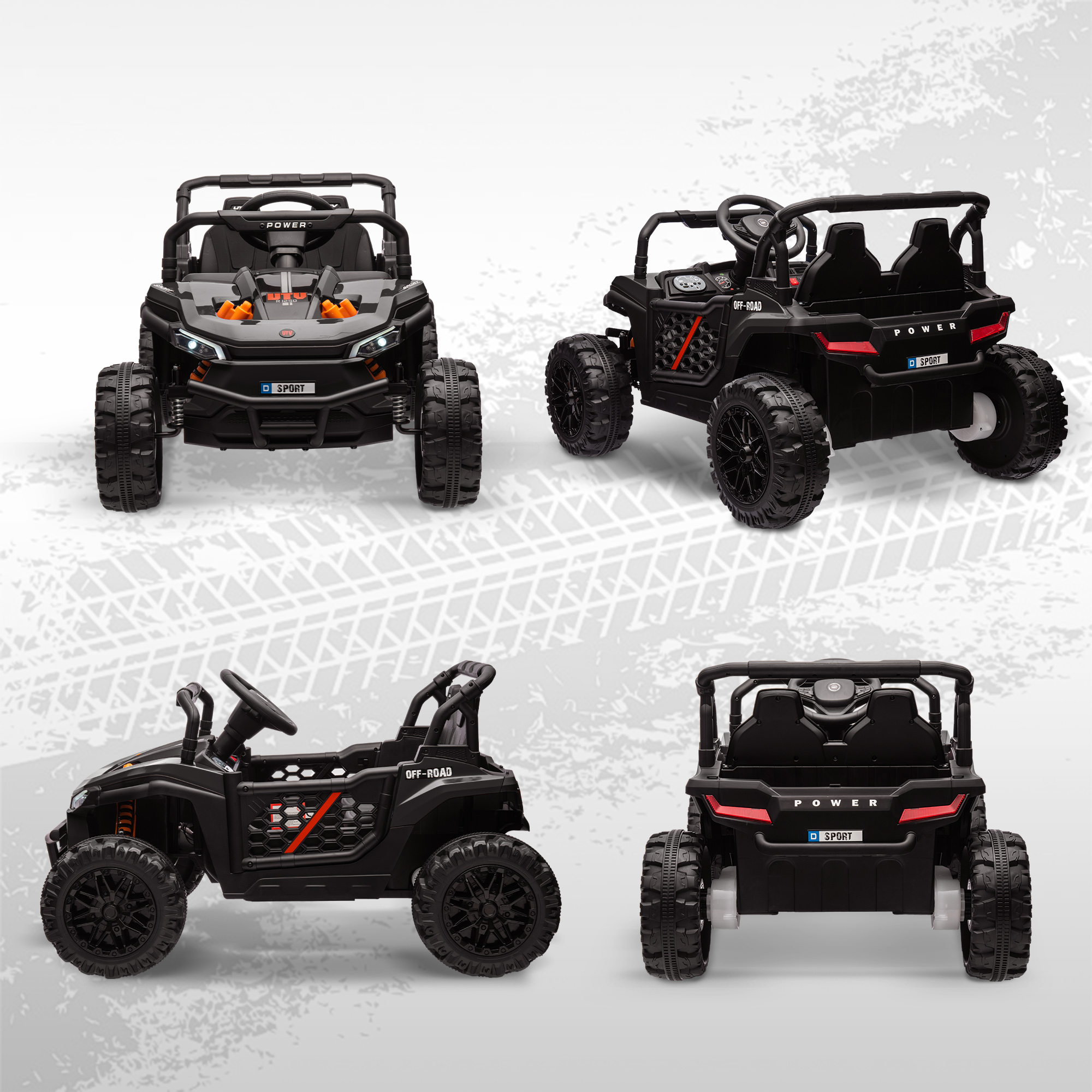 - Dual motors for powerful, smooth outdoor driving