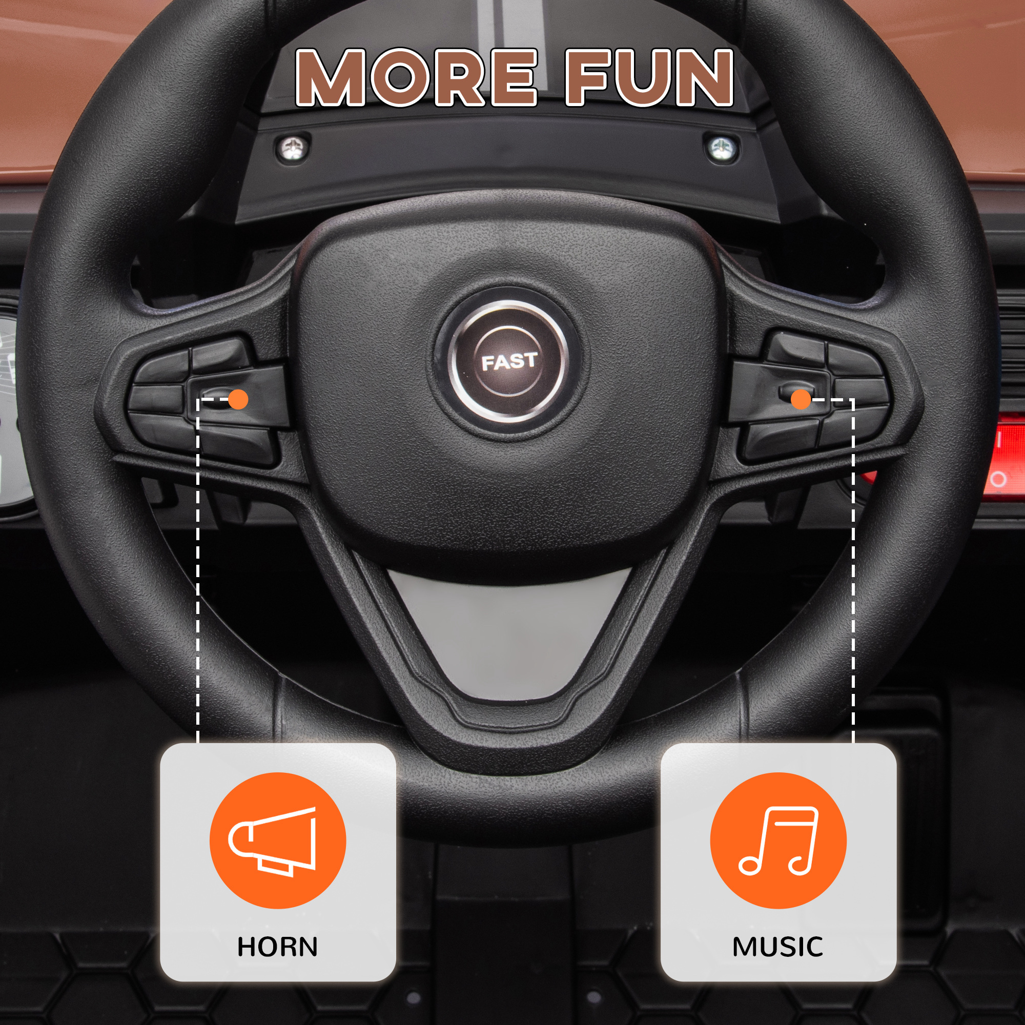- Built-in music, horn, LED lights and USB for tunes