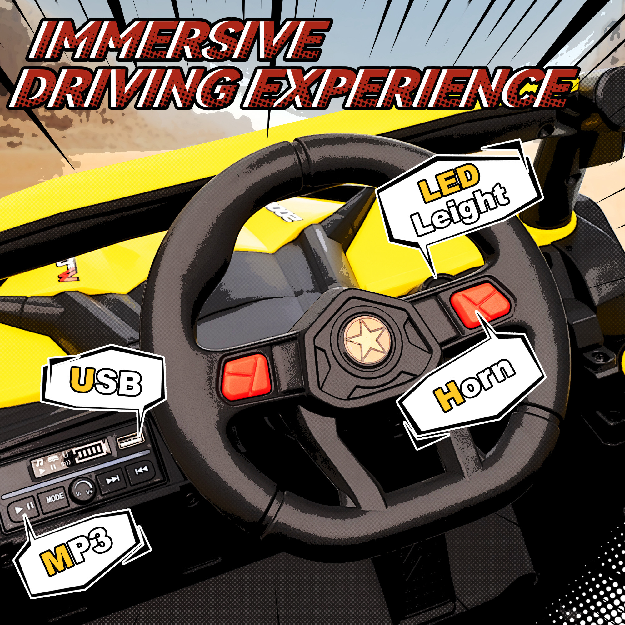 - Working lights, horn and music offer a fun, immersive UTV driving adventure