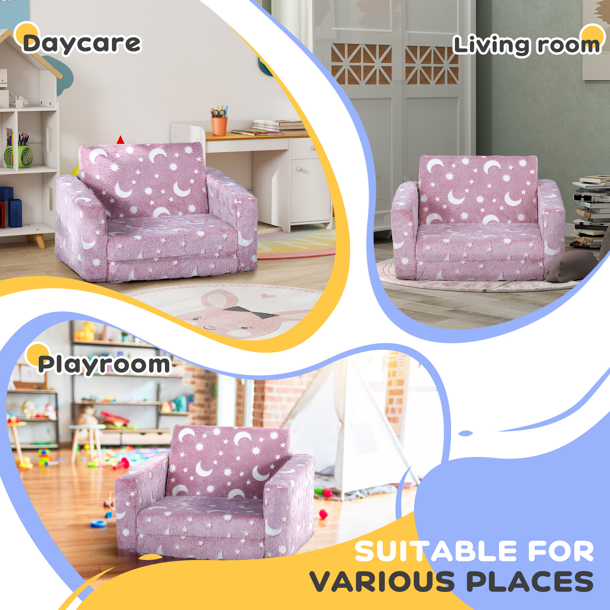 Discover the enchanting AIYAPLAY kids chair, where luminous fabric brings stars and moon to life at night. This versatile piece serves as both a comfy kids armchair and a cosy recliner, suitable for toddlers to sit or lie down with ease. Crafted from soft sponge with supportive backrest and armrests, it's a dreamy addition to any child's room. Plus, it's a breeze to keep clean!