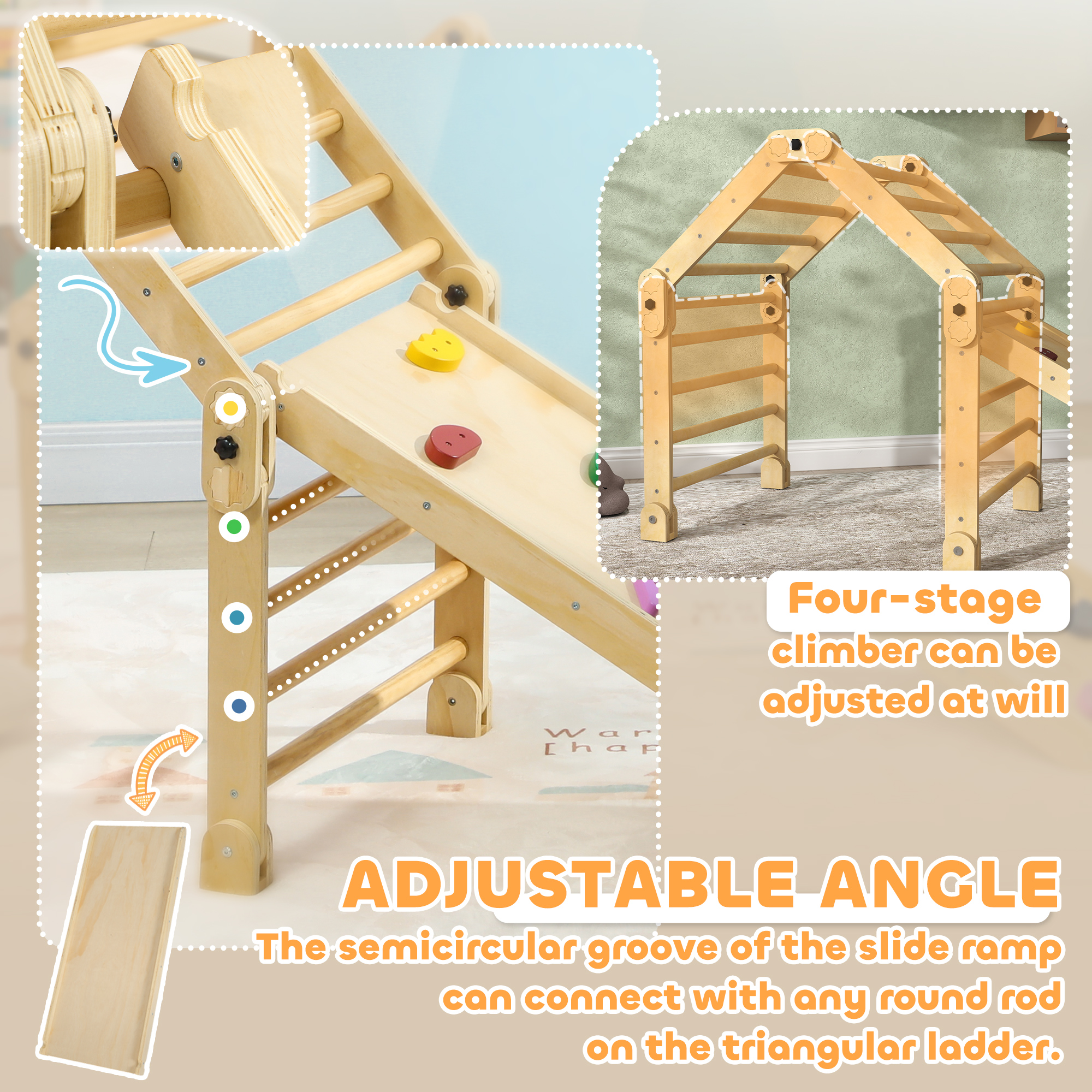 - Foldable design of the climbing triangle allows for easy storage and adjustable play angles