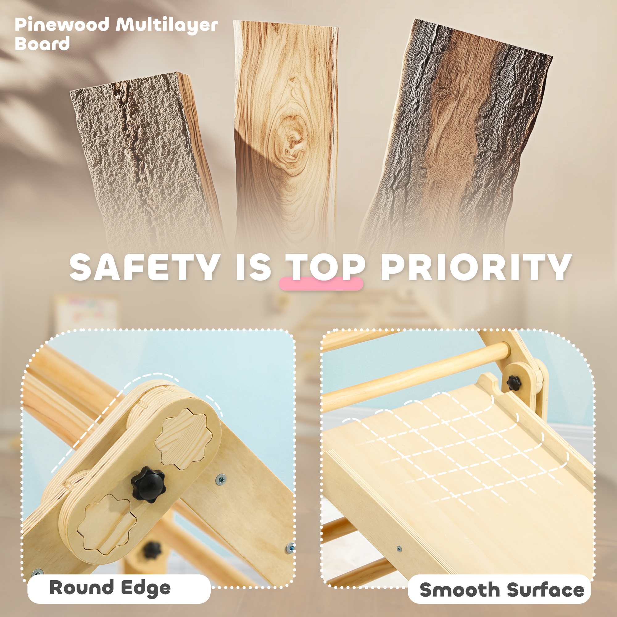 - Made from multi-layered pine wood with a smooth surface for safety