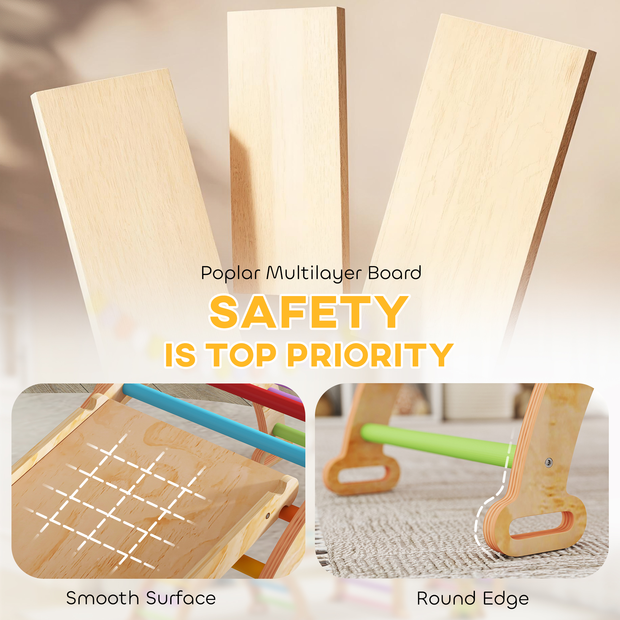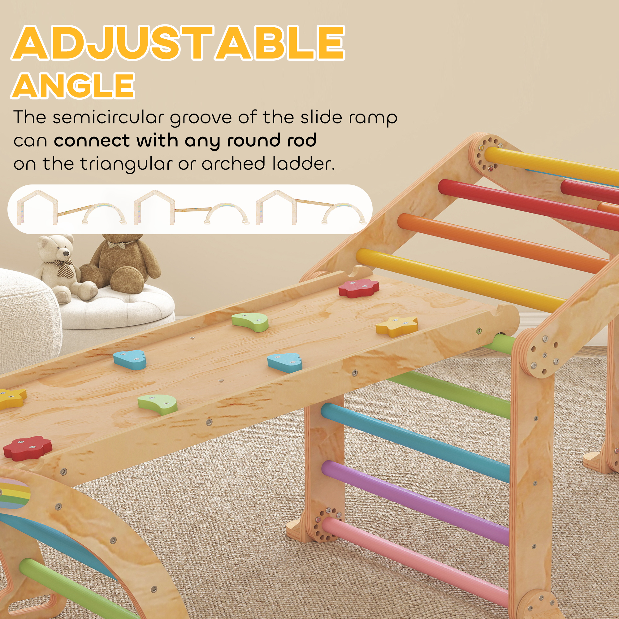 The AIYAPLAY kids climber offers nine exciting activities in one, great for channelling restless energy into fun playtime. It features climbing, crawling, sliding, rocking and drawing, keeping kids active while enhancing motor skills and coordination. The slide board connects to the ladder or arch, creating varied angles and new challenges. Bring the playground indoors with this versatile climbing frame set.