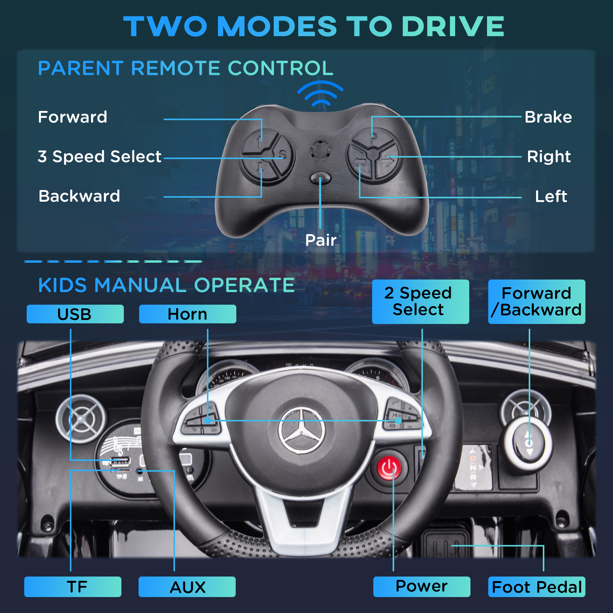 Mercedes-Benz style, made for kids – this AIYAPLAY ride-on lets little ones cruise in luxury. With USB and eight built-in songs, they'll ride to their favourite tunes. Realistic features like a horn, steering wheel and LED lights add to the fun. The seatbelt, wide wheels and suspension system keep rides safe and smooth. Adults can join too, using the remote to take control when needed – it's fun for all the family!