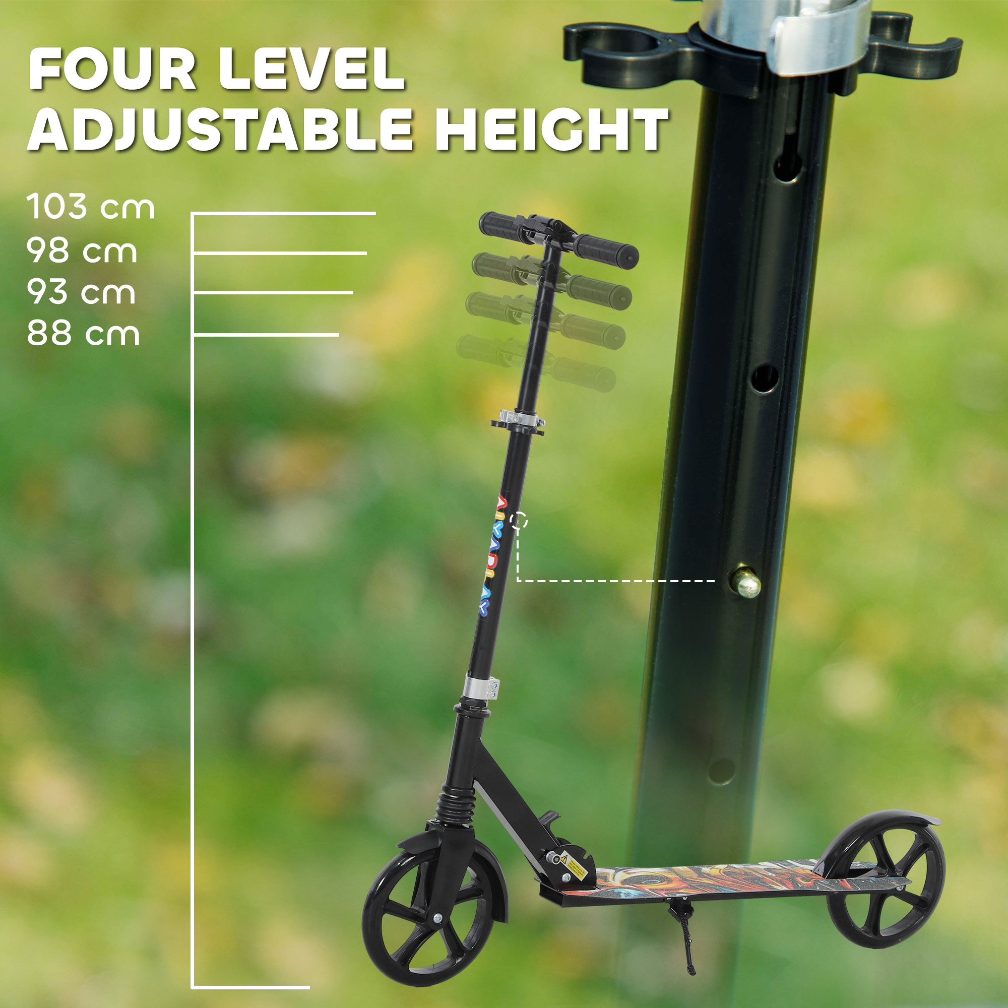 Outdoor fun is made possible with the AIYAPLAY kids scooter. Designed to grow with your child, it features four adjustable levels from 88cm to 103cm, suitable for ages 6-12 years. Smooth riding on various terrains, thanks to its front fork with shock absorption, it glides effortlessly on grass, gravel and cement. The rear brakes provide safe and swift stops. When finished, simply fold it for easy transport and space-saving storage. Great for little explorers ready for exciting adventures.