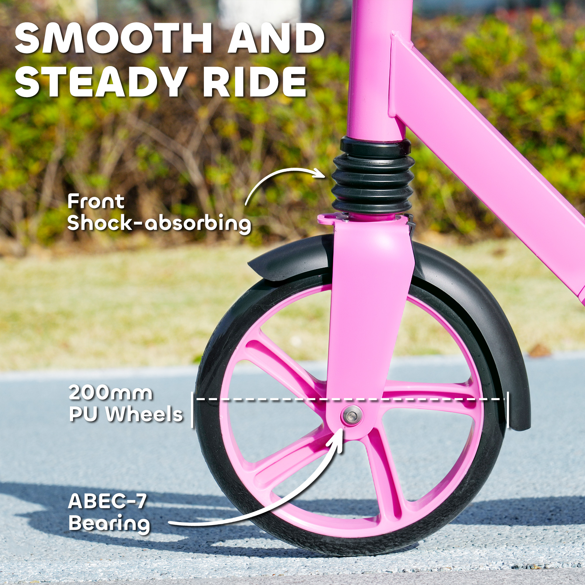 - Shock-absorbing front fork and tyres provide a smooth ride