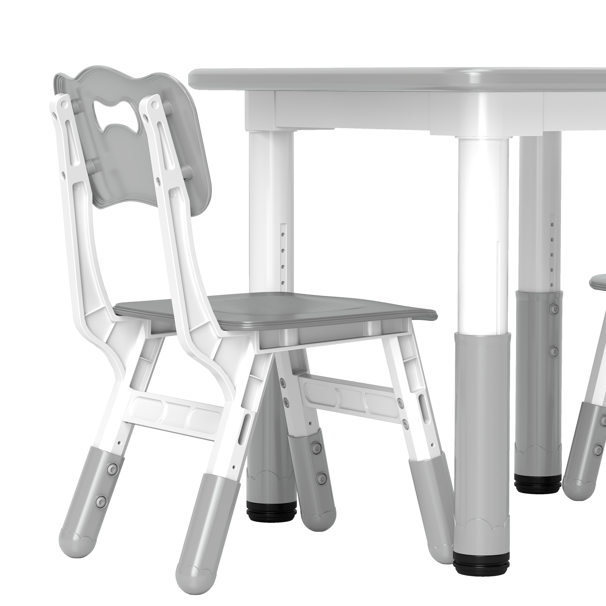 Kids need their space to learn, grow, play and develop – they'll get that with the AIYAPLAY toddler table and chair set. Perfectly adjustable, the table has seven height levels and the chairs have three, allowing kids to use them as they grow taller. Featuring a smooth, easy-to-clean surface, they can even eat their dinner here, making it easy to clean up any mess. Plus, the chairs tuck neatly under the table to save space, making it great for any room, no matter the size.