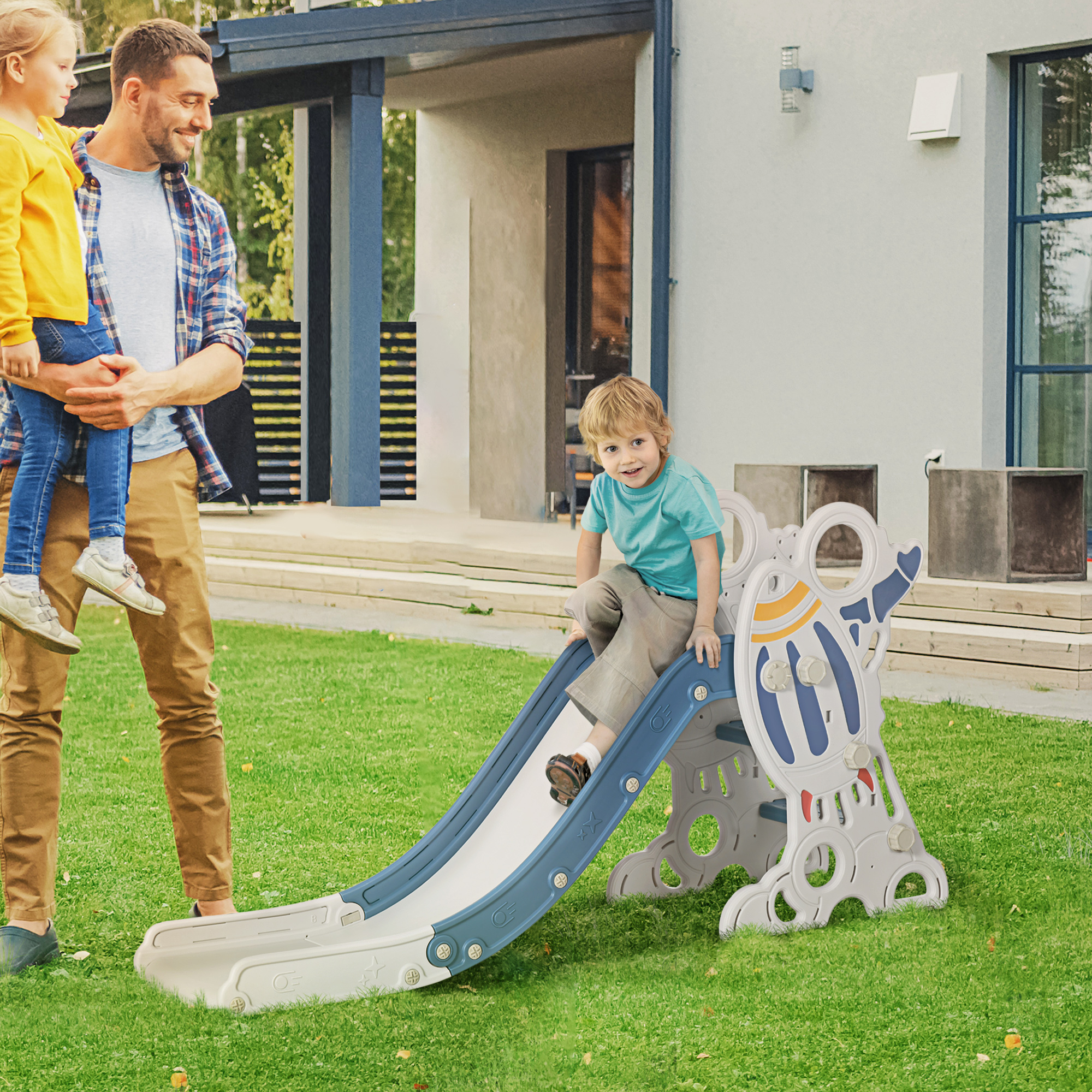 Keeping toddlers entertained is hard work. With this AIYAPLAY kids slide, that job becomes much easier. They'll safely climb up the non-slip steps, then go down the smooth slide, which has a buffer zone and rails on each side for safety. All edges are rounded, so there's less chance of them hurting themselves. There's a rocket on the side for a fun and imaginative look, appealing to young adventurers. Simple and effective, kids can safely enjoy hours of fun, making every day extra special.