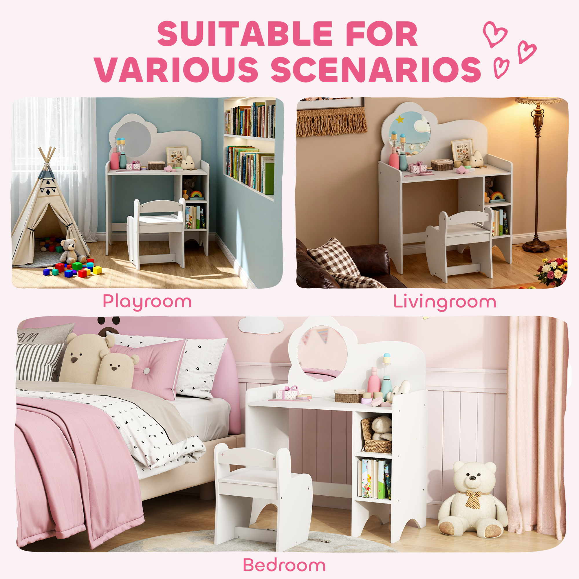 Give your child their own space to get creative with the AIYAPLAY kids dressing table set. Featuring an adorable flower-shaped mirror, it's a delightful addition for fun morning routines, magical makeup sessions and fabulous new hairstyles. The two open compartments keep their treasures neatly organised and clutter-free. With its playful design, rounded corners and a shatter-resistant mirror, you can enjoy peace of mind while they explore and play in their joyful, safe space!