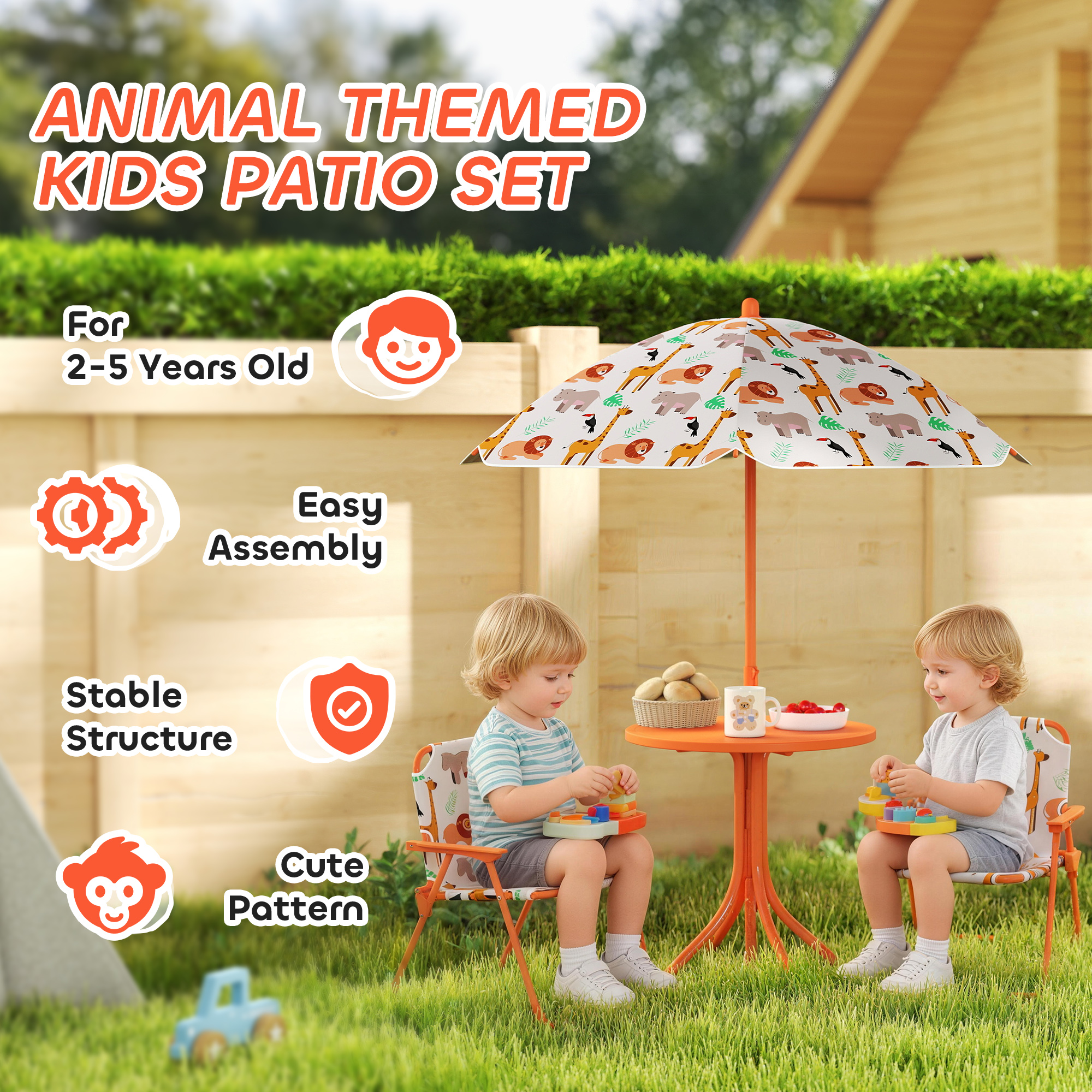 Struggling to keep snacks and toys organised during sunny outdoor adventures? Bright sunlight can quickly end playtime, leaving kids disappointed. The AIYAPLAY kids picnic table with umbrella makes outdoor fun easier. The chairs fold flat for simple transport to the park or beach and the generously sized umbrella offers plenty of shade. With its cute animal design, this childrens garden furniture creates a delightful space where children can play, explore and enjoy valuable time with family.