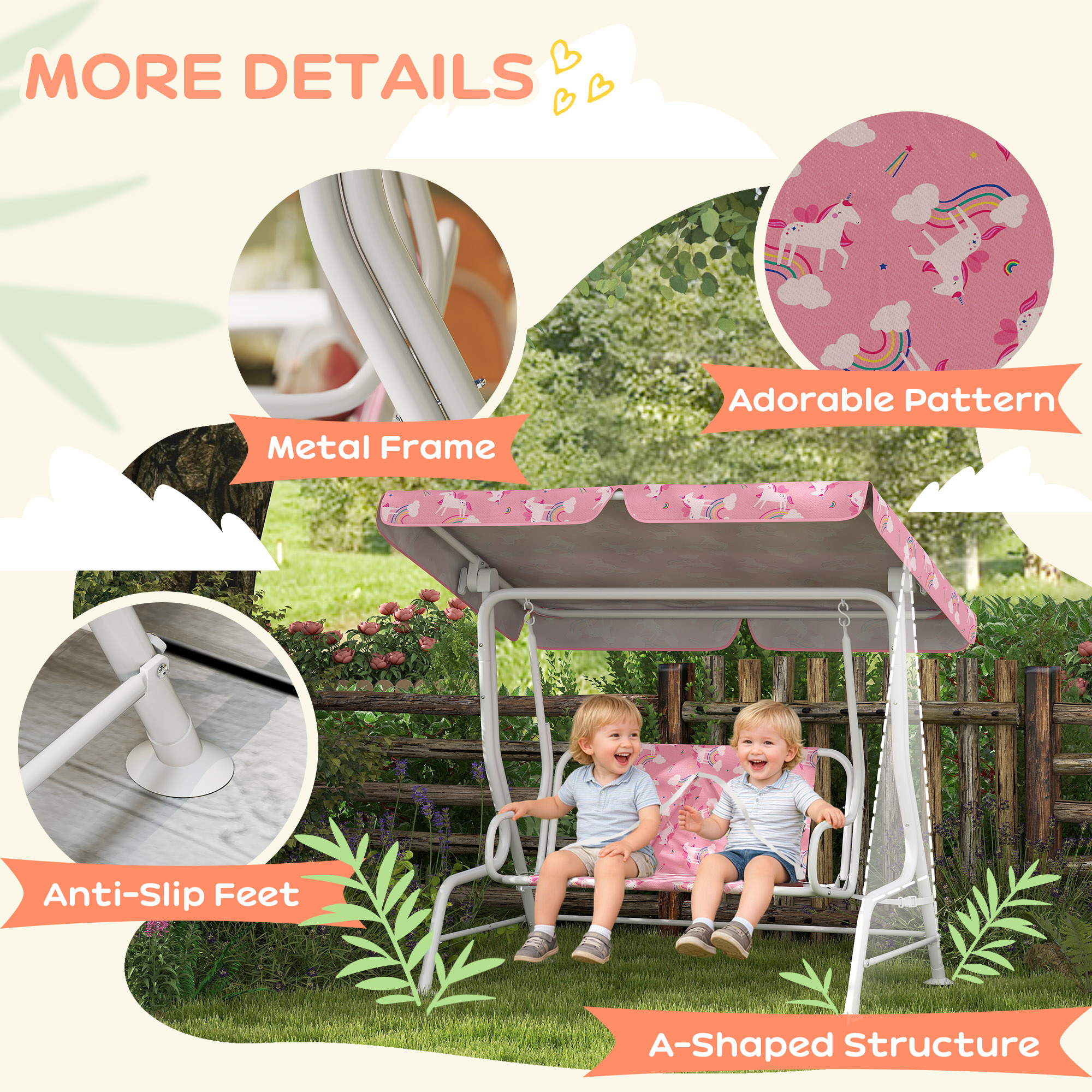The AIYAPLAY kids swing chair outdoor solves this with a reinforced steel frame for stability, letting kids swing safely without tipping. Its safari animal design creates a playful seat that sparks imagination, while double seat belts keep each child secure. With anti-slip feet and a comfortable double seat, children can share joyful moments together, letting you relax and watch their fairytale adventures unfold with complete peace of mind.