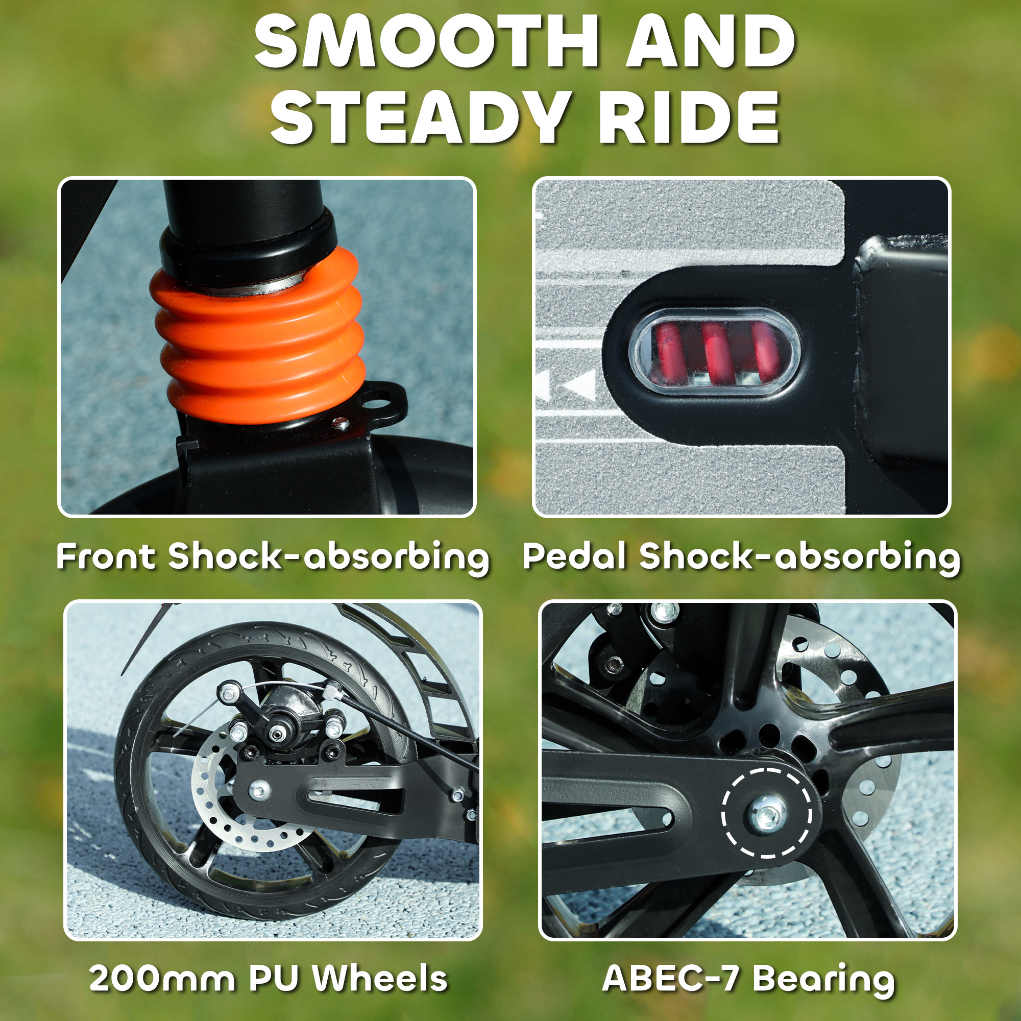 - Shock absorption for a smooth, comfortable ride