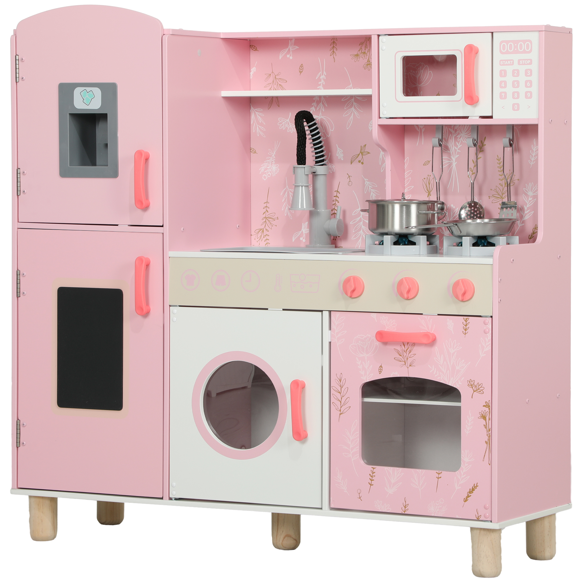 Unleash your little chef's imagination with the AIYAPLAY toy kitchen! This engaging play kitchen includes an ice maker, microwave, oven and washing machine, great for learning food prep and clean-up. Plus, a chalkboard to display the day's menu adds a creative twist. Light and sound features on the stoves bring this kids kitchen set to life, making playtime truly magical.