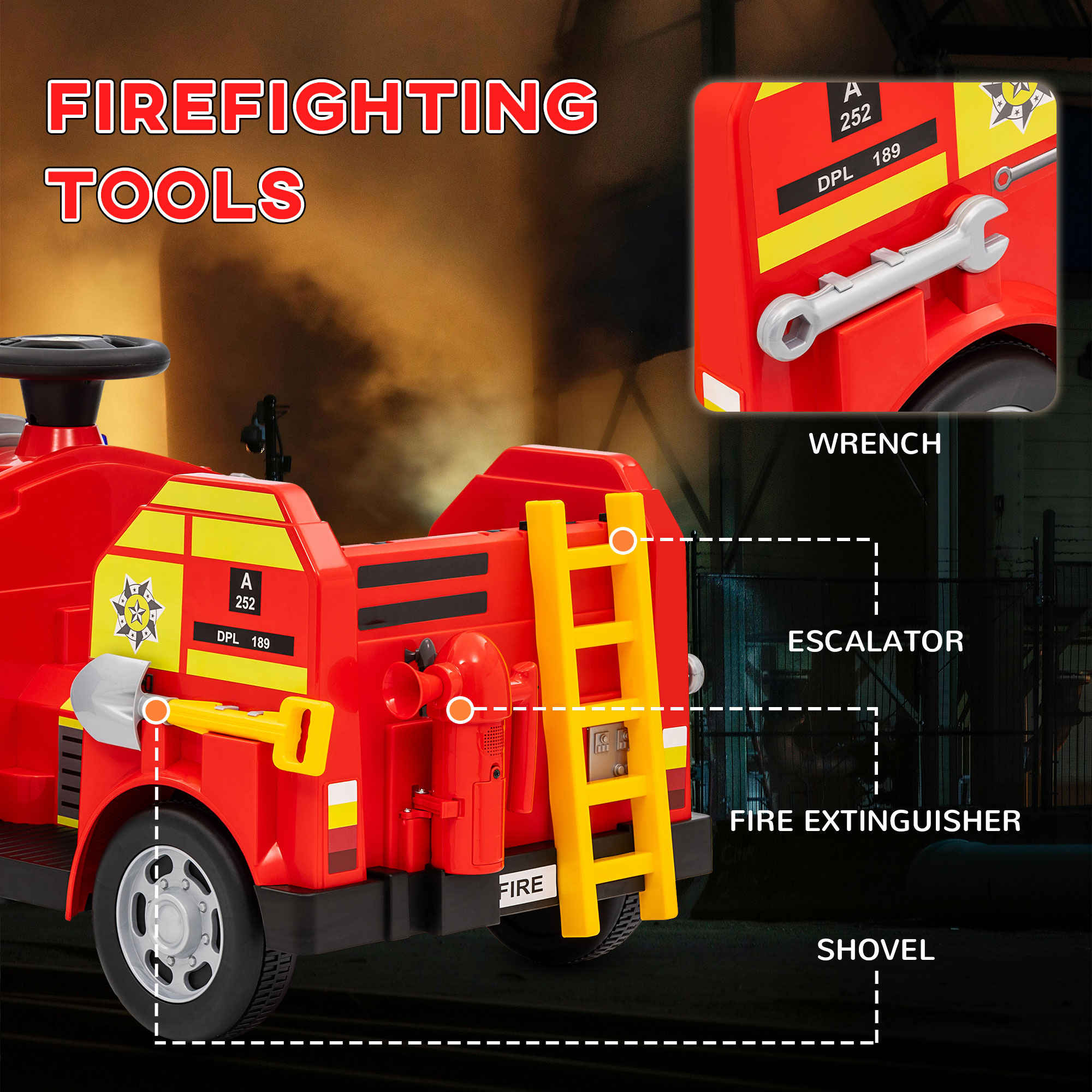- Incudes play firefighting tools for exciting, realistic rescue missions