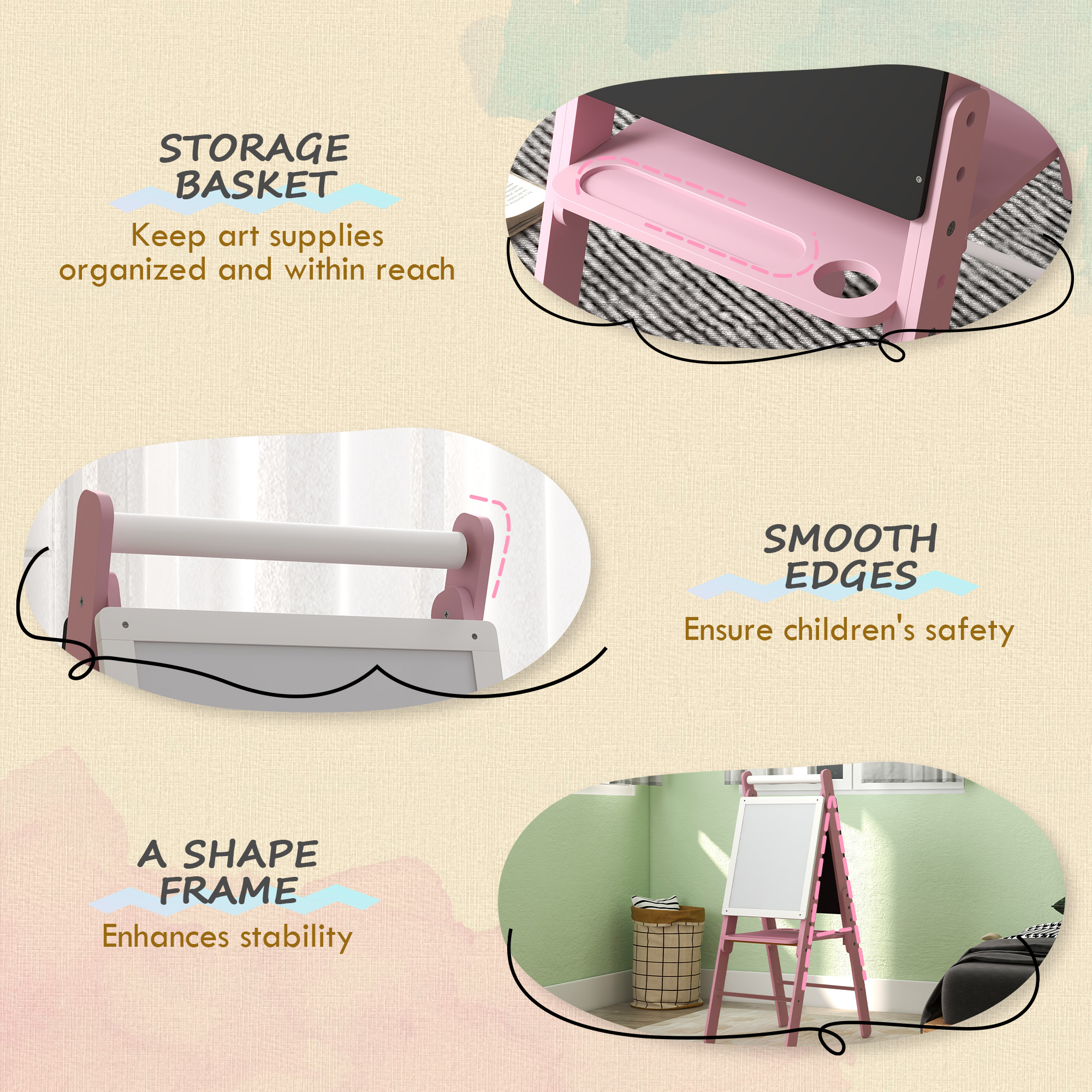 Unleash your child's imagination with our AIYAPLAY kids easel. Featuring a blackboard, whiteboard and top paper roll, there's lots to do to ignite their artistic genius. With multiple height options, it's suitable for different ages - as your child grows taller, they can still use this easel. Made with a sturdy A-frame, it uses pinewood and MDF for extra durability. Finished with a storage shelf, keeping supplies organised. Let their creativity soar and bring their ideas to life!
