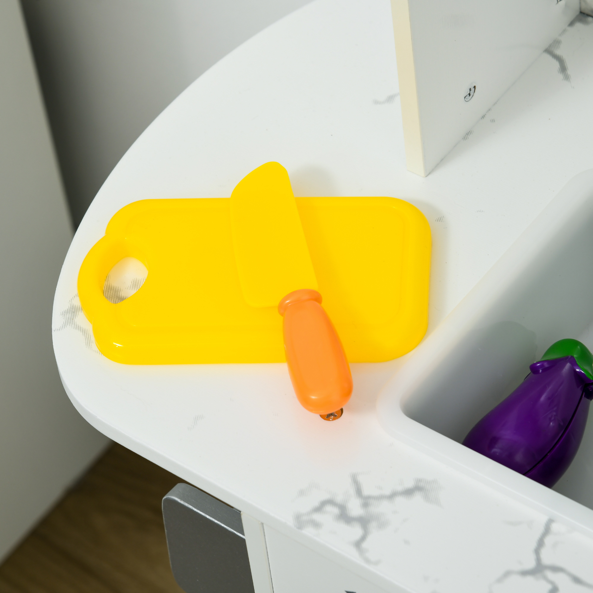 Introducing this AIYAPLAY toy kitchen, designed to bring delight and joy to all children. With realistic sound and light effects, pretend microwave, sink and washing machine, there's lots to keep kids engaged. There's even an apron and hat for the true chef experience. Whether it’s hosting dinner parties or making up roleplaying games, it encourages social play and endless creativity, making boredom a thing of the past.