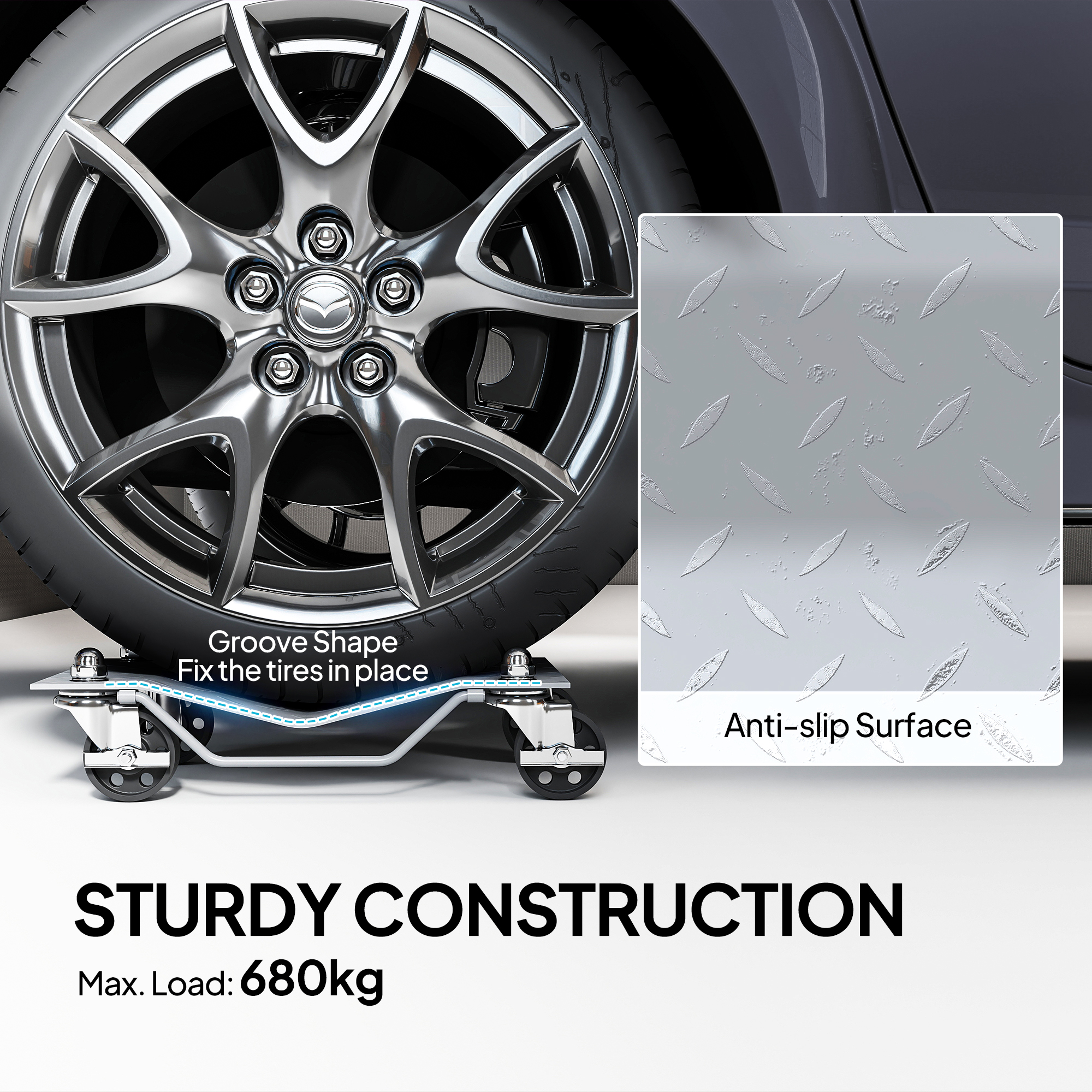 Need to move your vehicle in tight spaces? The DURHNAD car dolly skates are your solution. Lightweight and compact, it's easy for one person to maneuver effortlessly. When not in use, it stores away neatly without taking up much space. Whether a wheel is blocked, the front wheel is missing or the vehicle has been in an accident, these car dollies make your job easier, giving you complete freedom of movement even in small areas.