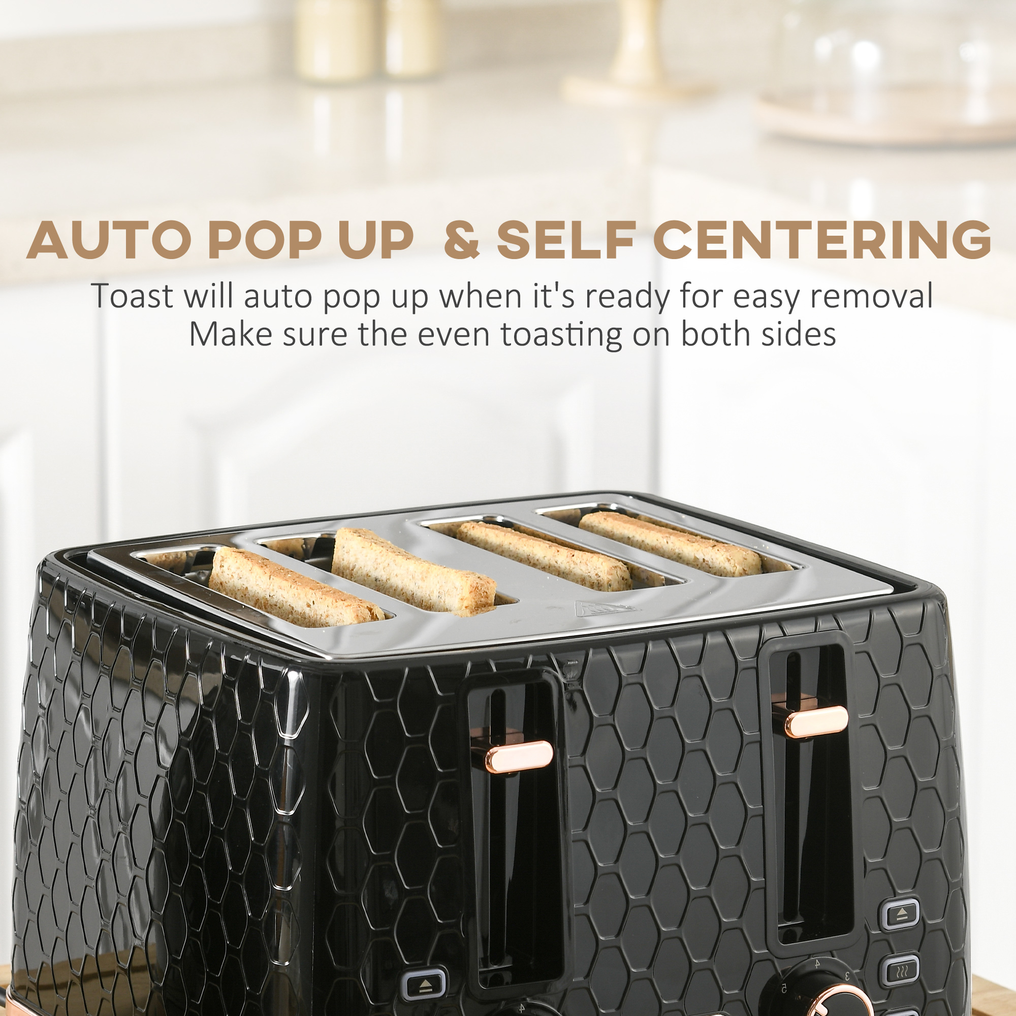 Elevate your kitchen with a coordinated look, starting with this HOMCOM set. It includes a 1.7-litre rapid-boil kettle and a four-slice toaster, both featuring a sleek honeycomb pattern for a stylish touch. The toaster offers seven browning levels, letting you customise your toast to perfection, while the kettle boils up to six cups at a time—great for hosting friends over a chat. Whether you’re craving a snack or a drink, this set has you covered.