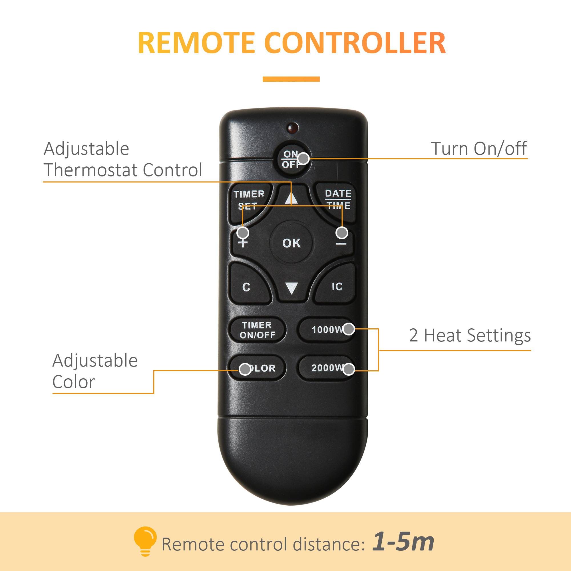 Transform your living space into a haven with the HOMCOM electric fireplace, perfect for those who cherish home decor. This piece offers two heat settings, 1000W and 2000W, efficiently warming areas of 20-25㎡. Its sleek black frame and captivating artificial fire effect create a stunning focal point. Enjoy peace of mind with built-in overheating protection, while the remote control and timer add convenience. Ideal for cozy evenings or gatherings, this fireplace elevates any room with its charm.