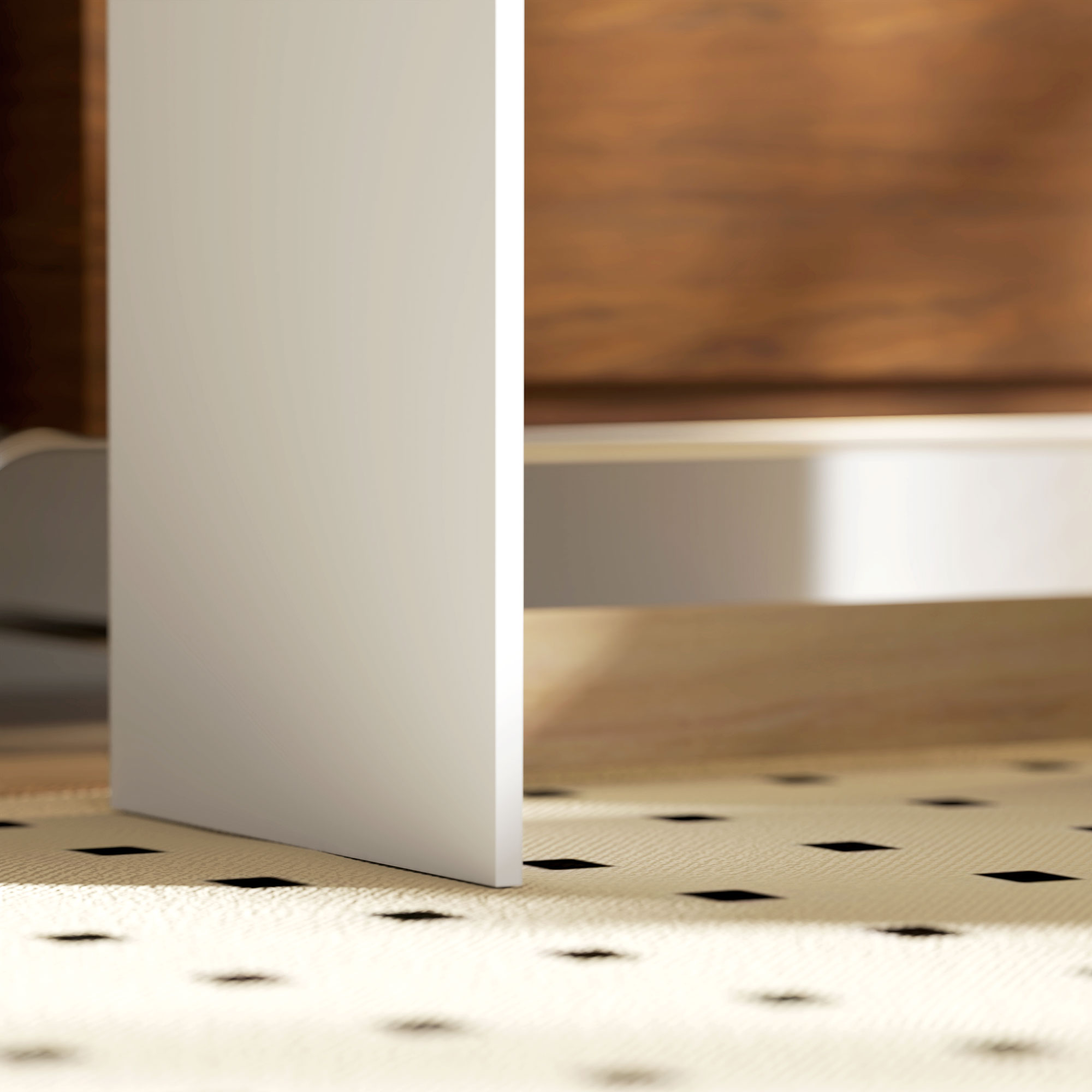 - Melamine particle board surface is easy to clean