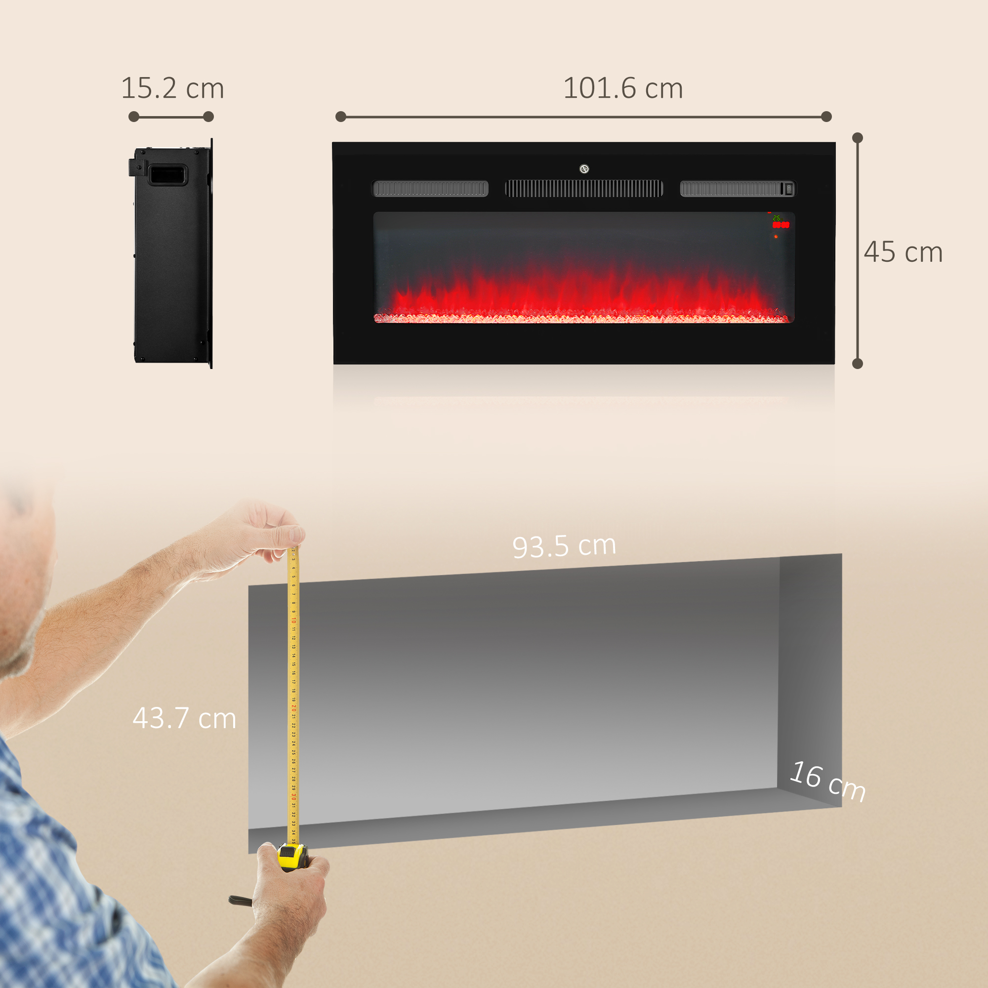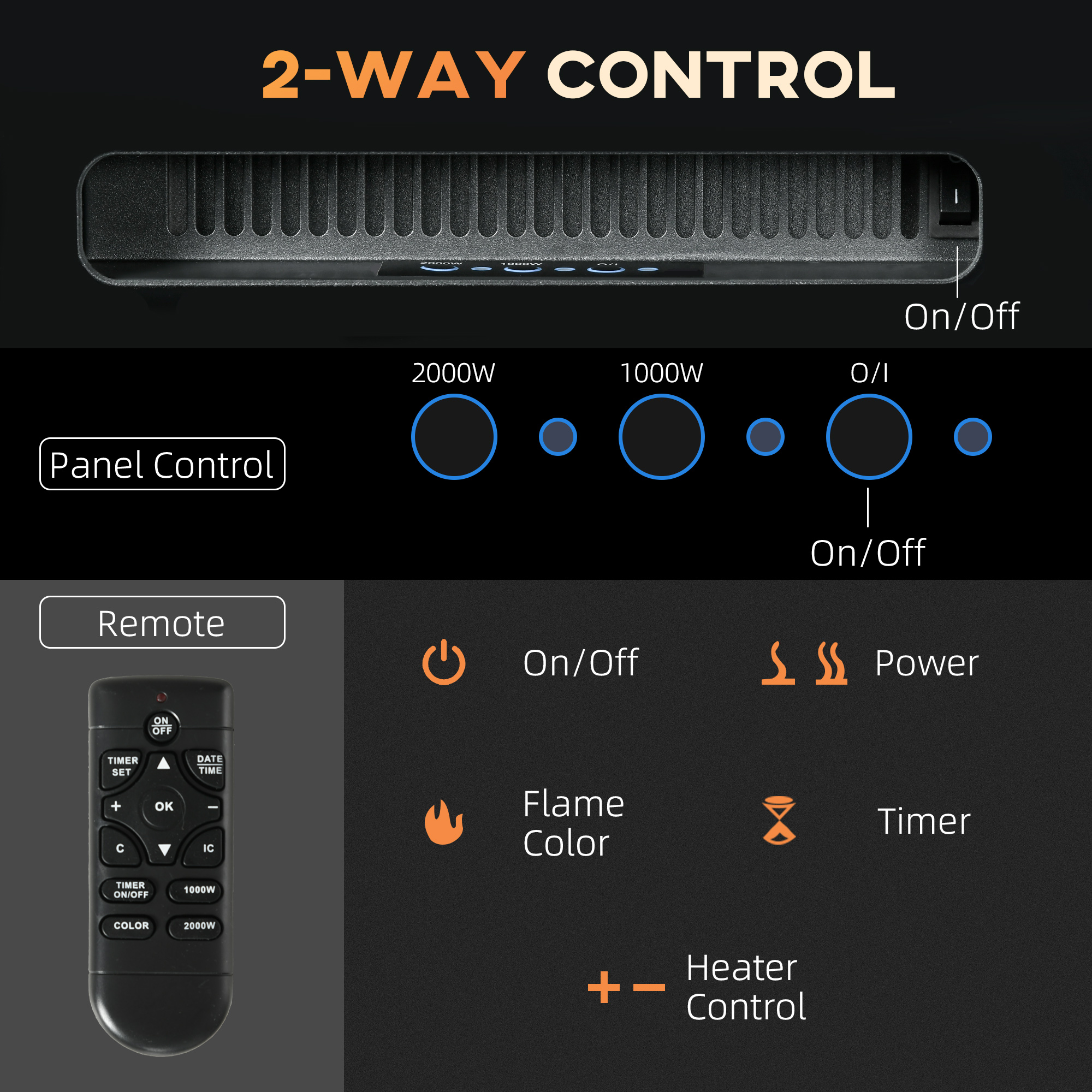 Keep warm and showcase style in the home. This HOMCOM wall mounted electric fire is suitable for all home and office spaces. Simply pick the chosen spot and fix up. The temperature is adjustable between 15-30℃ to give you more control of the heat you want, with a thermostat so it safely stays on temperature you choose. Adjust the heat, flame colour and running time either on unit or with included remote. Sleek, modern and a must for the cooler months ahead.