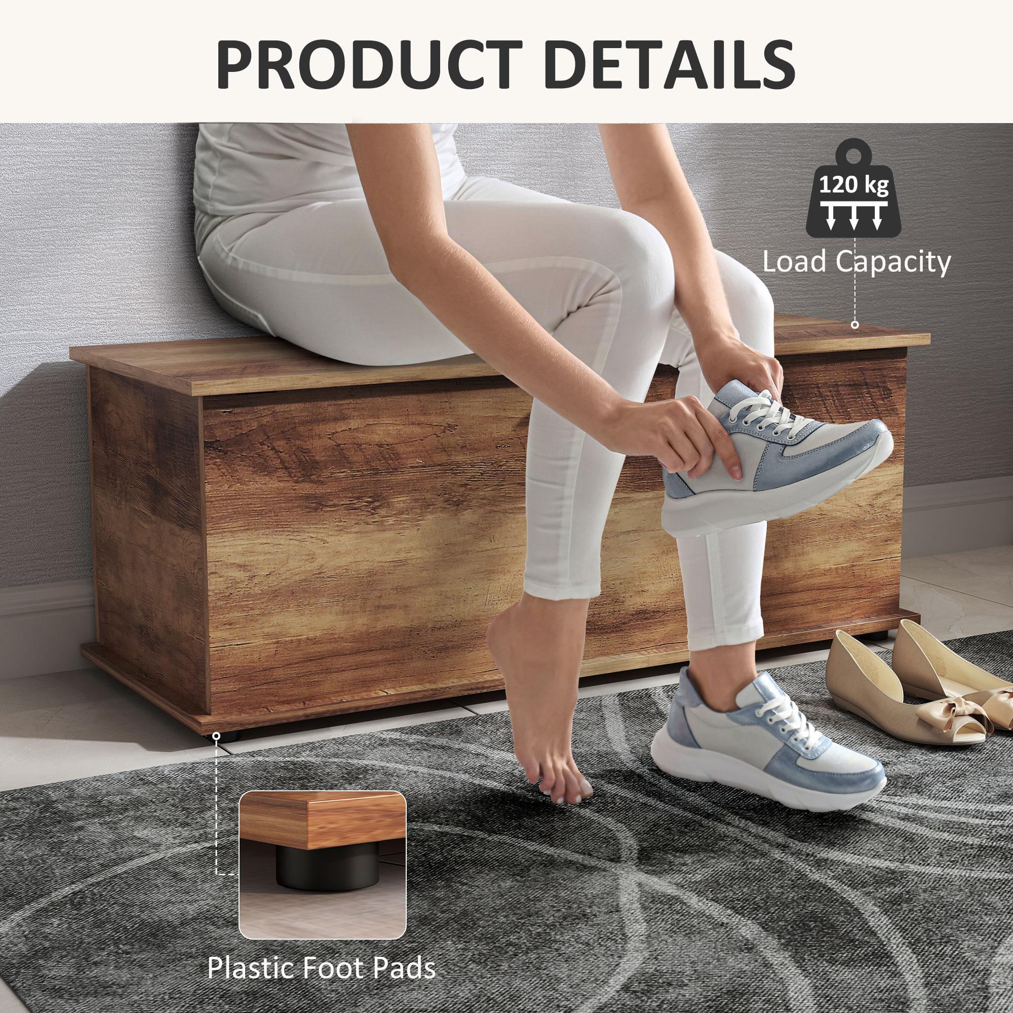 HOMCOM offers the optimal storage solution to all your organising needs with this simple modern designed storage chest. The robust wooden construction makes the lid and the internal space hold weight up to 120kg and 60kg. Constructed to offer a great decorative and practical addition to any room decor. This storage box can be used as a footstool or bed end bench.