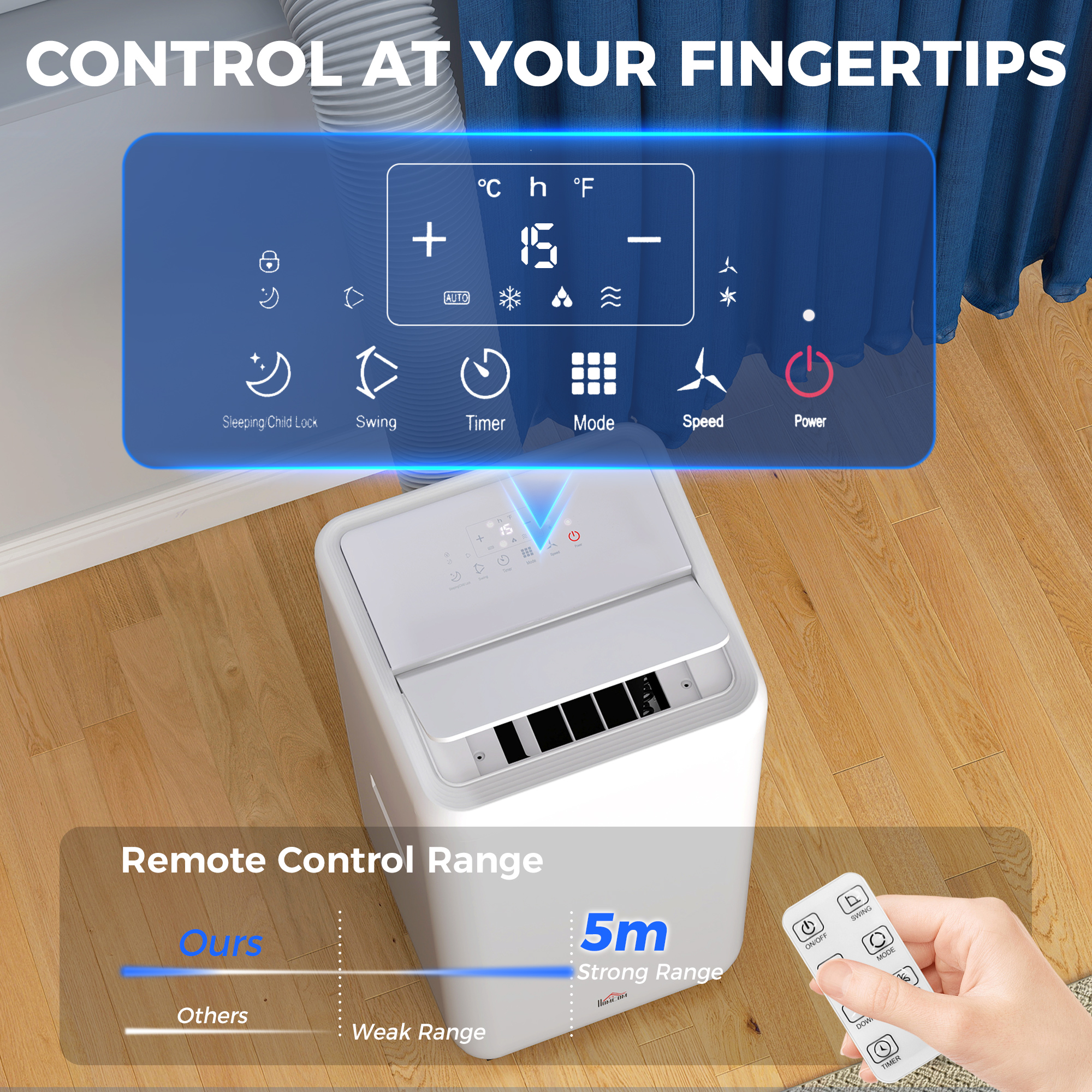 - Air blades can be moved up and down automatically. Adjust wind direction easily