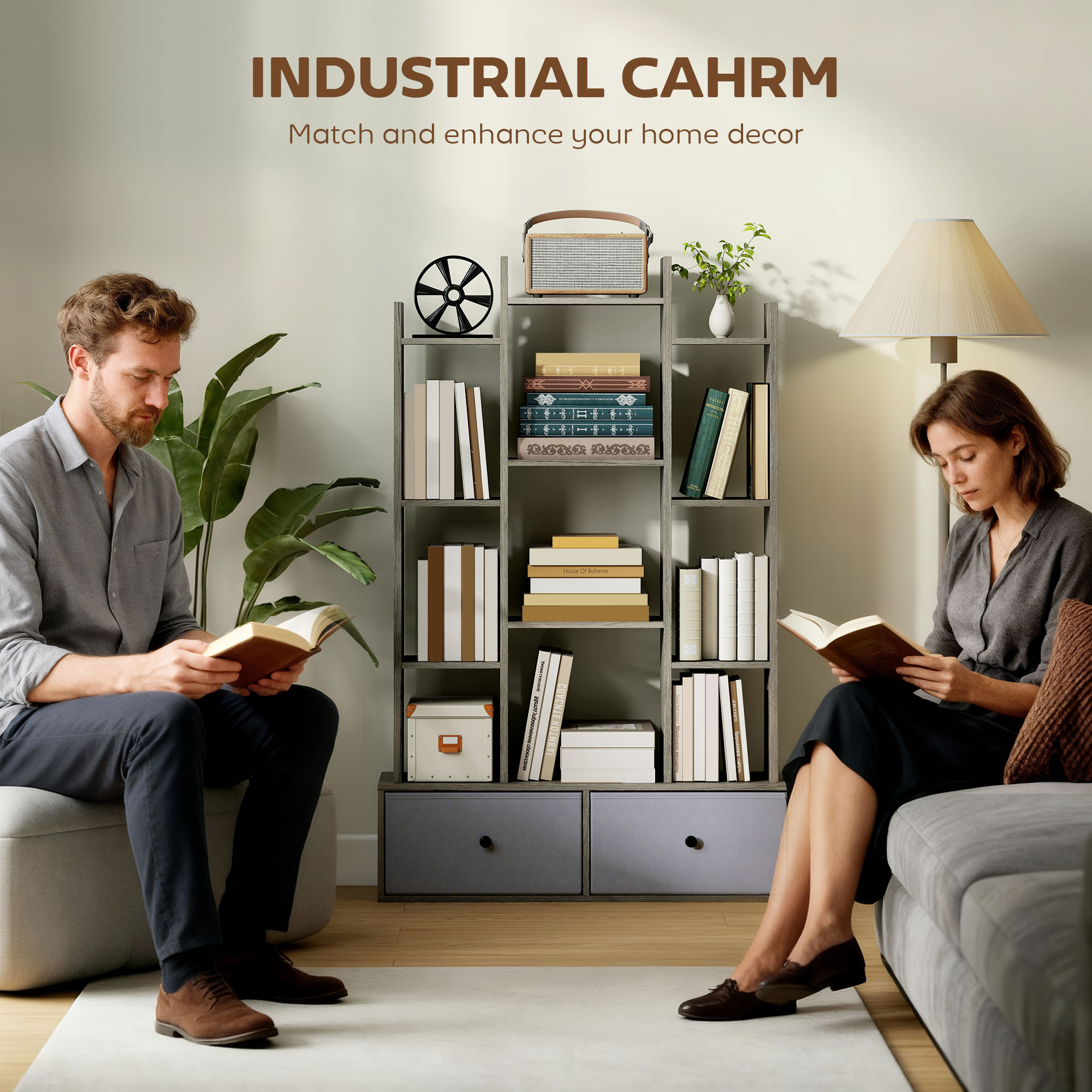 The place to keep all books, ornaments and more, with this HOMCOM tree bookcase. Its 12 cubbies and two drawers provide plenty of organisation and holding room, while a wide base and anti-tip kit prevent unwanted tipping, ensuring family safety. You can create a tidy, personalised display, transforming your living space into a sanctuary of calm and joyful organisation with our bookshelf.