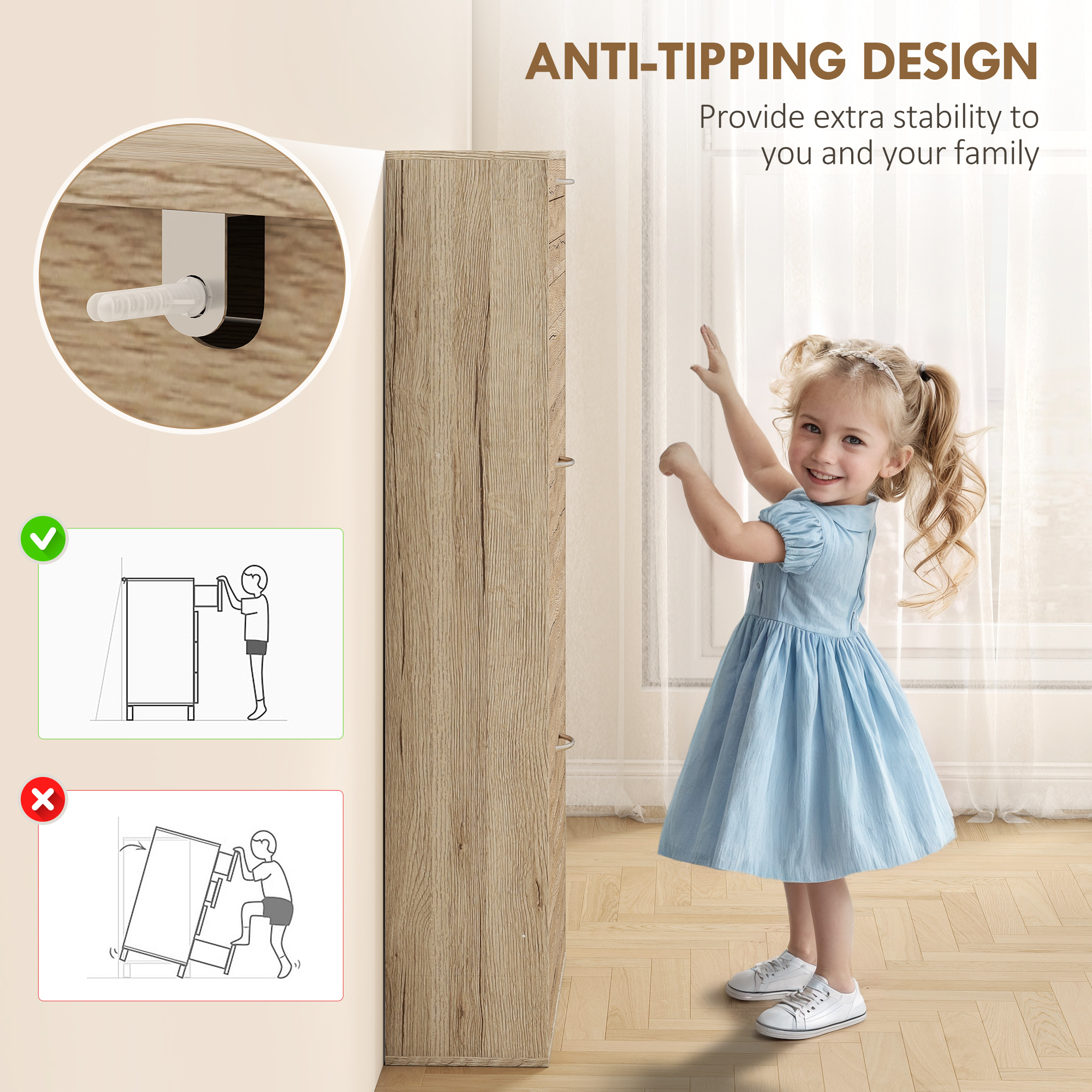 - Anti-tipping straps included for safety