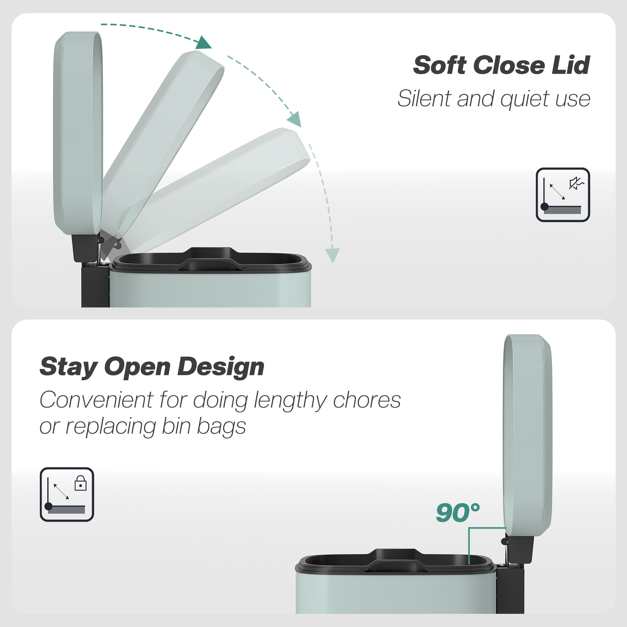 - Silent soft-close and stay-open lid, foot pedal for easy opening
