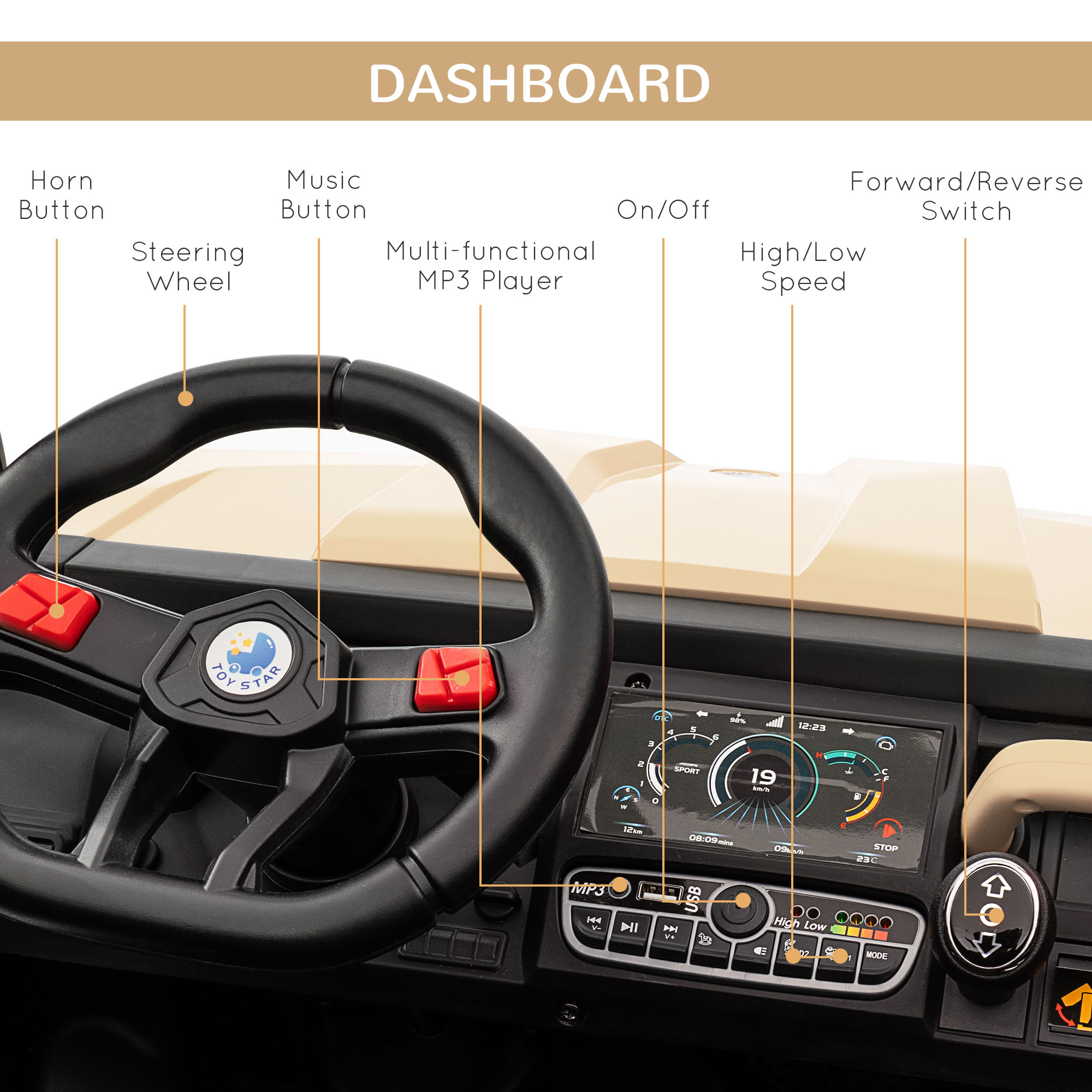 Buckle up for big adventures with the HOMCOM kids electric ride-on UTV! This two-seater lets little ones share the fun, cruising to built-in music, flashing LED lights and honking the horn – just like a real vehicle. With a top speed of 6km/h, it's thrilling yet safe. Adults can join in too, thanks to the remote control. Whether they're driving solo or with a buddy, it's fun the whole family can enjoy – making every ride unforgettable.