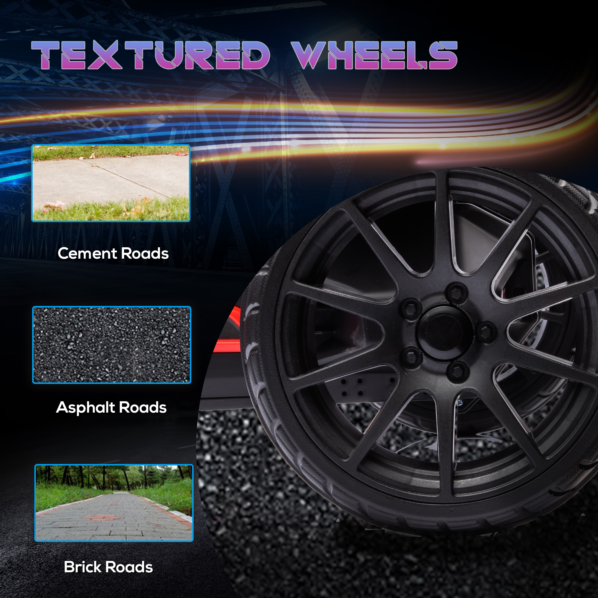 - Two adjustable speeds for a fun and safe driving experience