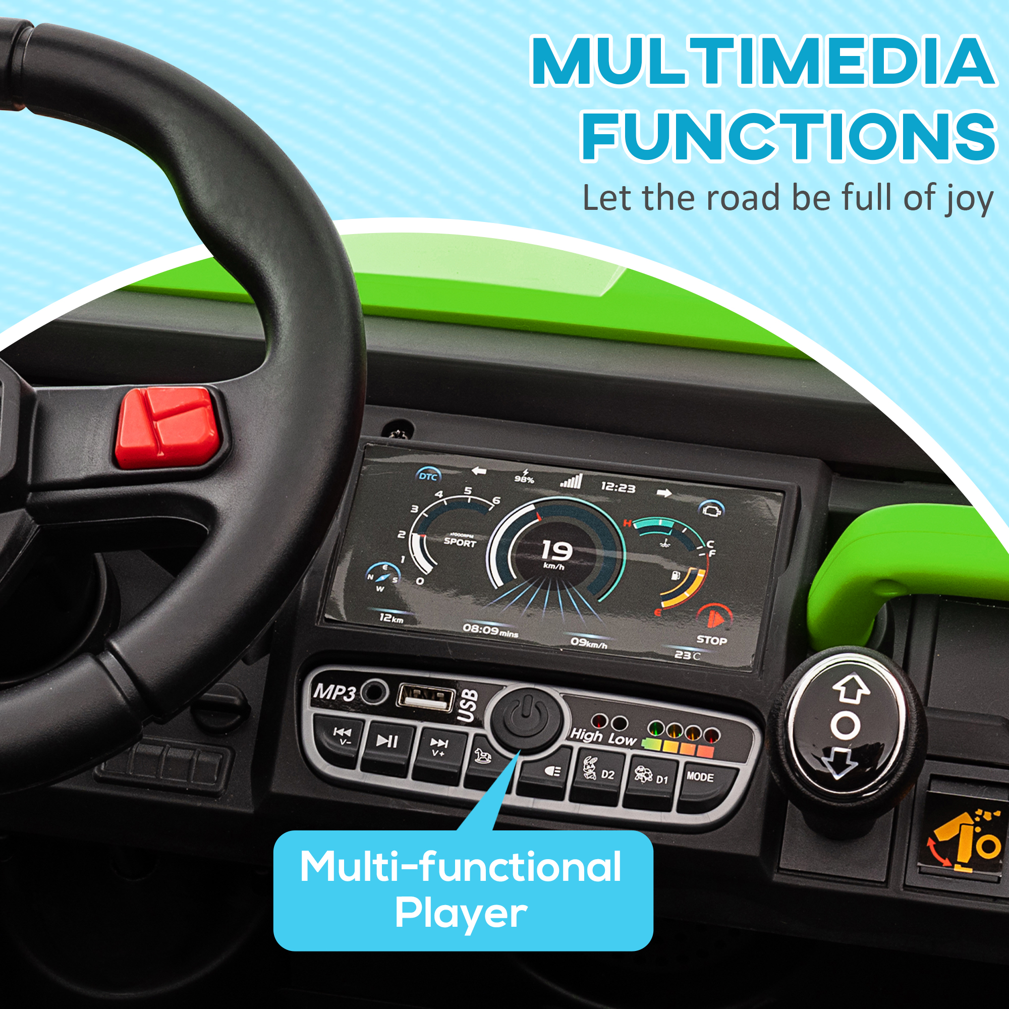 Buckle up for big adventures with the HOMCOM kids electric ride-on UTV! This two-seater lets little ones share the fun, cruising to built-in music, flashing LED lights and honking the horn – just like a real vehicle. With a top speed of 6km/h, it's thrilling yet safe. Adults can join in too, thanks to the remote control. Whether they're driving solo or with a buddy, it's fun the whole family can enjoy – making every ride unforgettable.