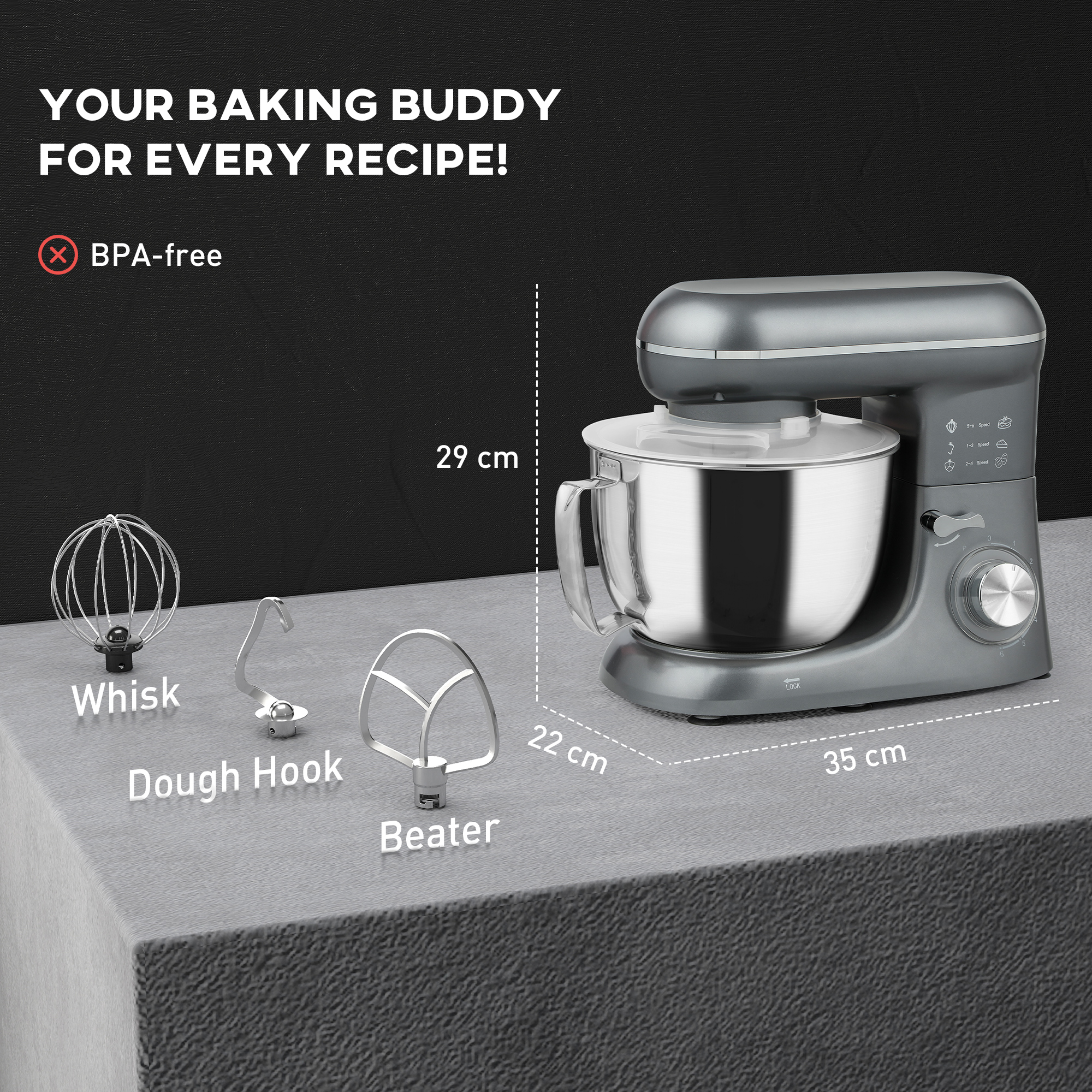 Every home baker needs a helping hand - go for this HOMCOM 1300W stand mixer. With six speeds and a pulsation setting, plus with a whisk, dough hook and beater included, you can whip up plenty - batter, pizza dough, bread dough, pastry, pasta and beyond. A 4.5L stainless steel bowl offers plenty of room for whipping up delicious treats for you and friends. Use yourself, or it makes an ideal gift.