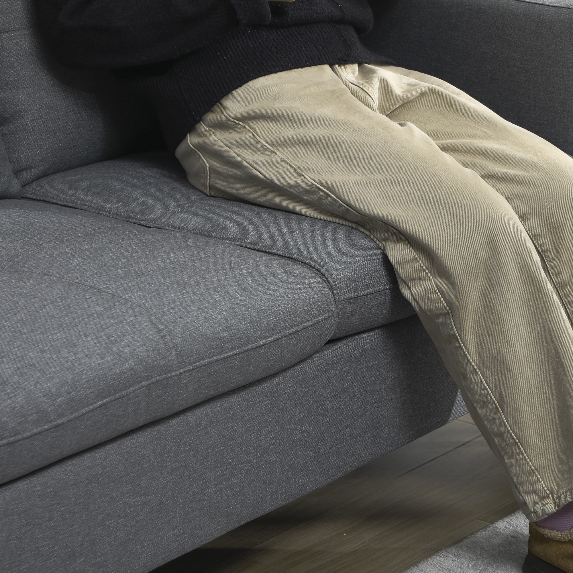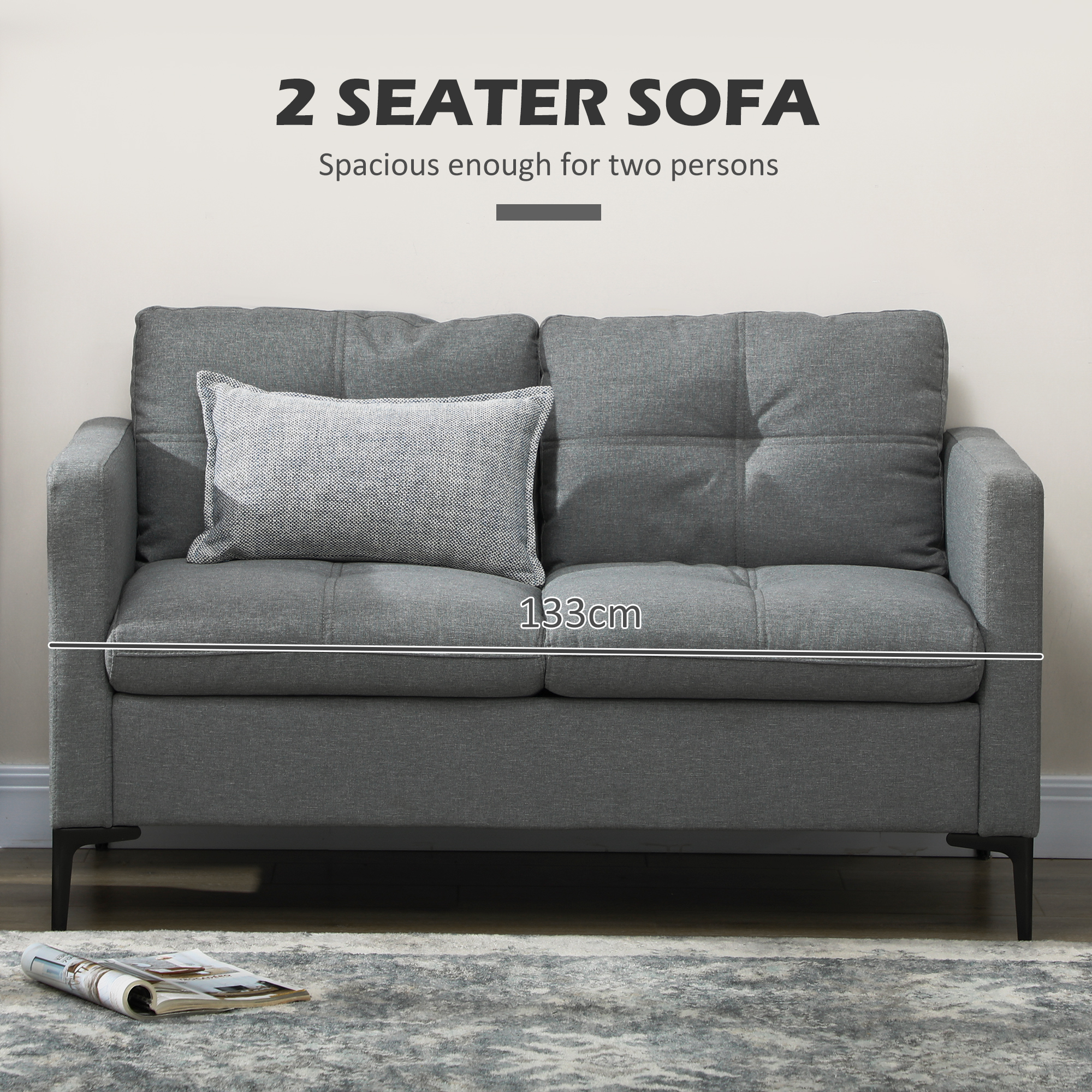 A simple and comfortable essential, for every space. This HOMCOM two-seater sofa provides plenty of room for you - plus it's roomy enough if you want to relax with company. A steel frame and legs make a strong, supportive core: filled with sponge and 'S' springs to sink into. Two included cushions included for extra comfort. Complete with foot pads to gently protect the floor.