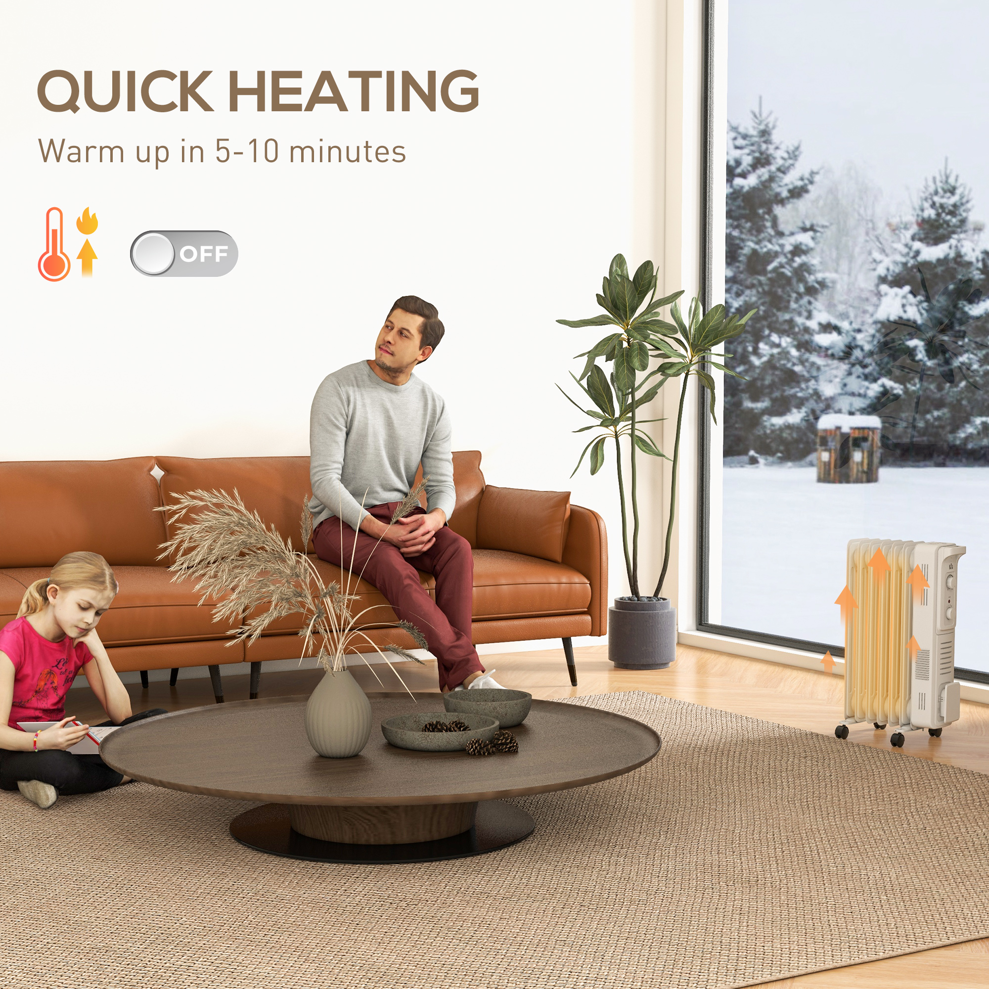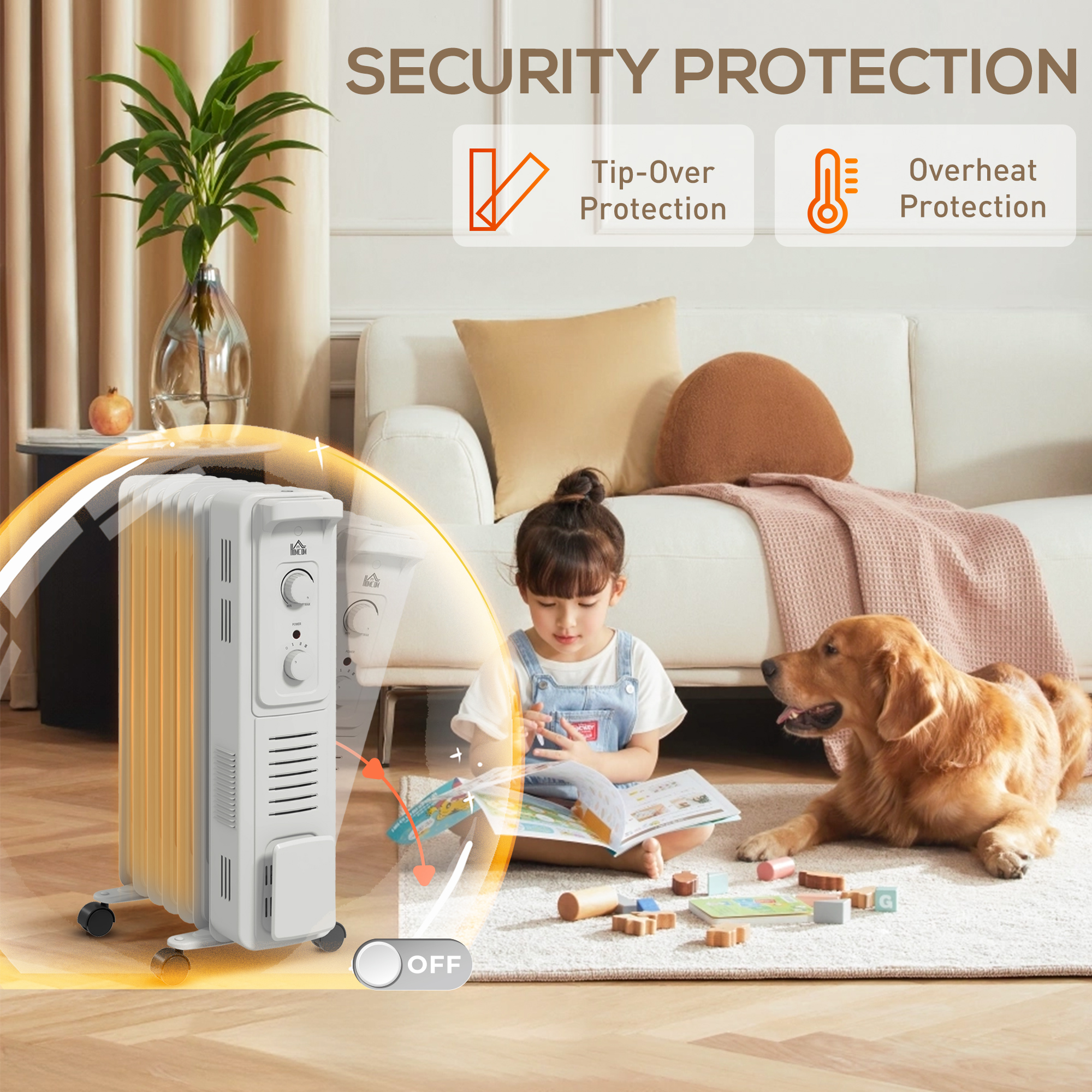 - Auto-shut off: radiator turns off if it overheats or tips over