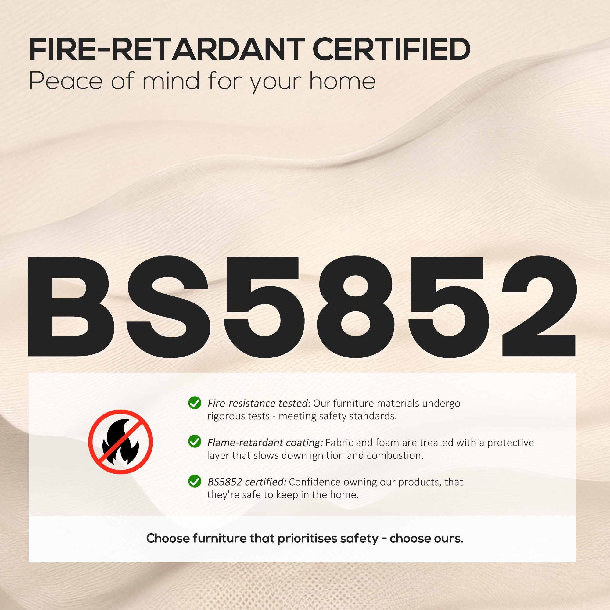 - Certification: BS5852 (Fabric and padding)