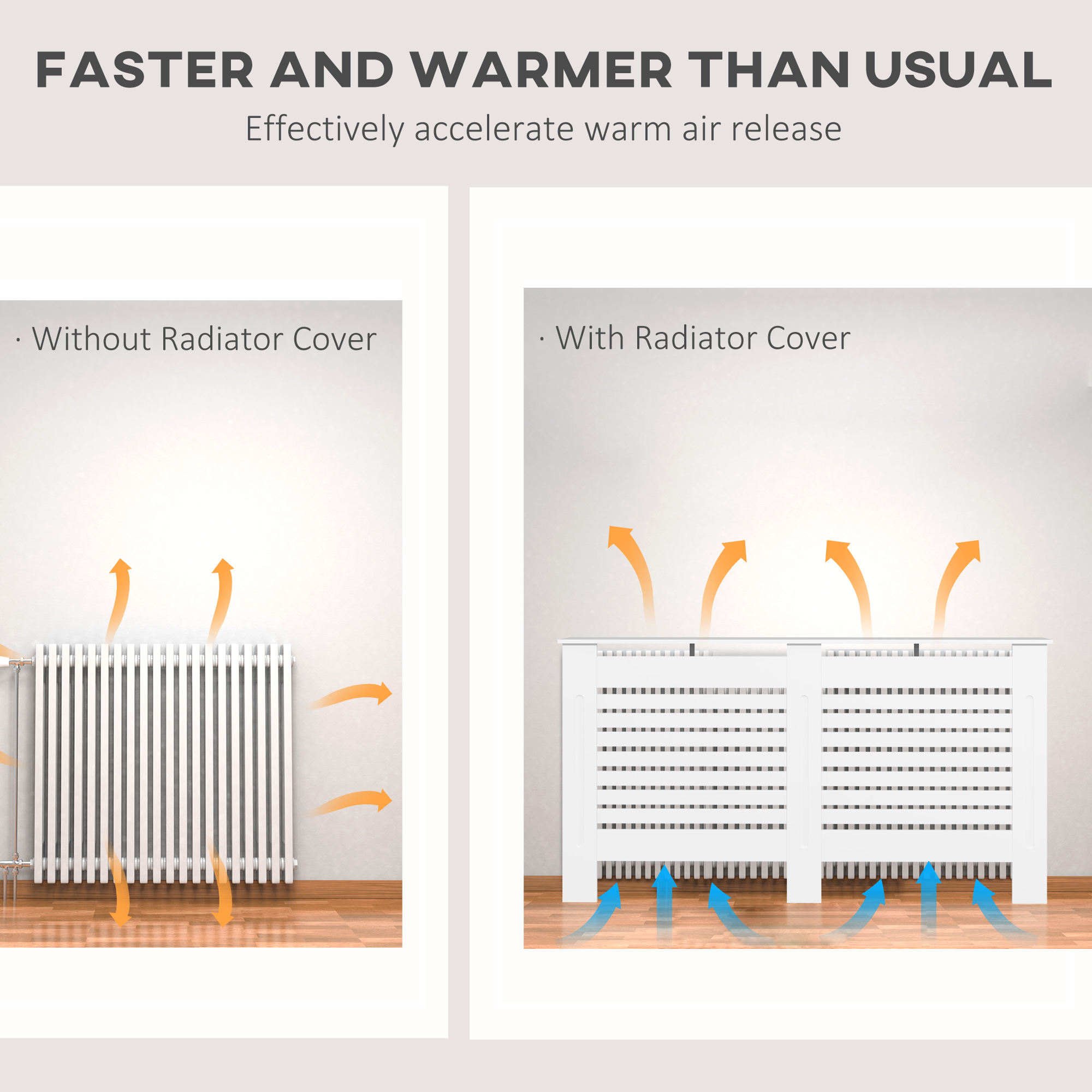 This modern radiator cover cabinet from HOMCOM is a designed to help hide old or unsightly radiator, protect hands from a hot surface and offer extra shelving for ornaments. The slatted design with sufficient vents allows for fluid heat flow while still preventing children and pets from touching the hot radiator surface. Manufactured from durable MDF in white finish for long term service, it is an elegant yet practical addition to your home and office.