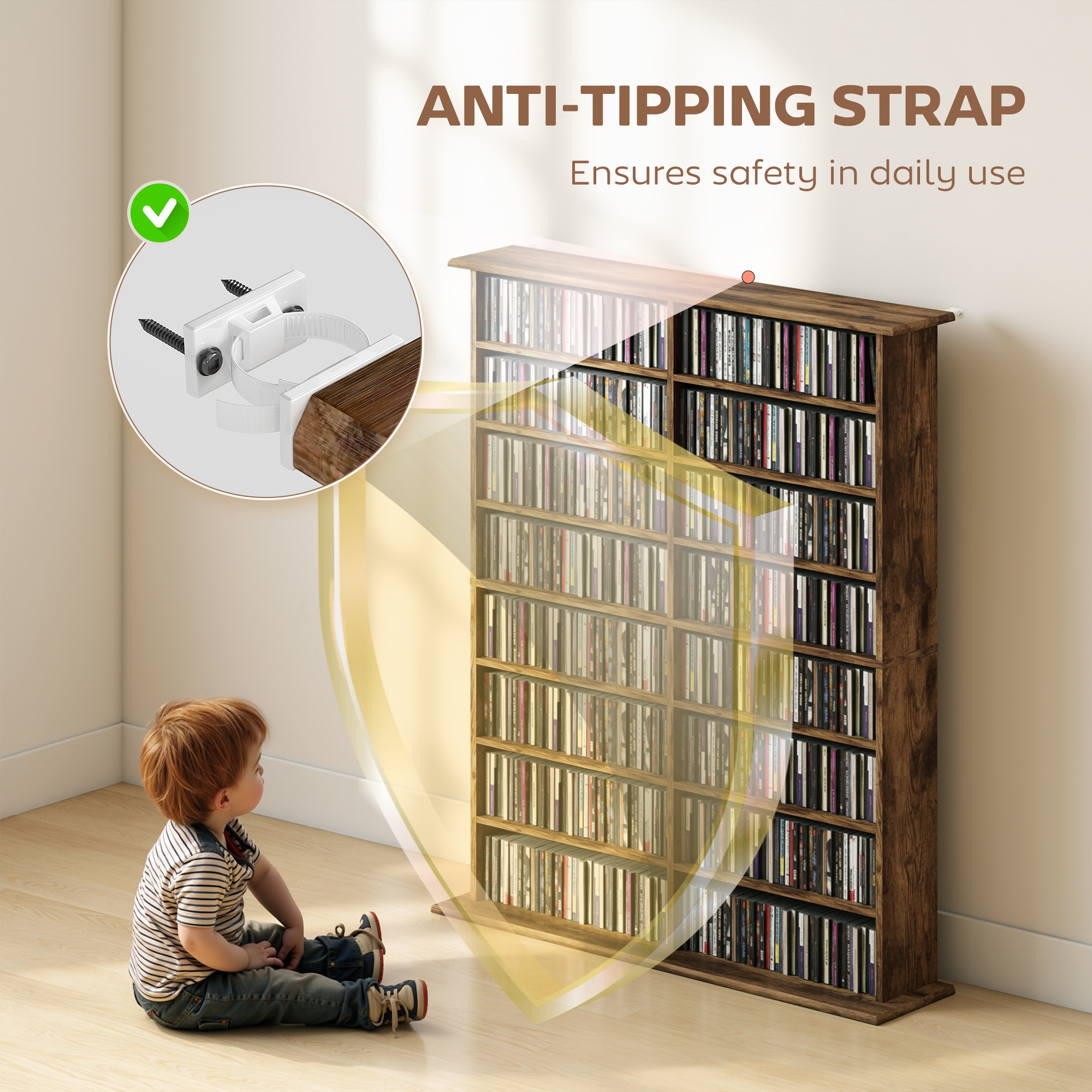 This HOMCOM DVD rack showcases 16 shelves, with 12 adjustable shelves: room for up to 720 CDs, 396 DVDs or 396 Blu-rays. Made from particle board, the CD shelf's structure is reliable and is made to be used every day. Coming with anti-tipping straps to fix to a wall, so our HOMCOM DVD shelf doesn't fall forwards and cause damage.