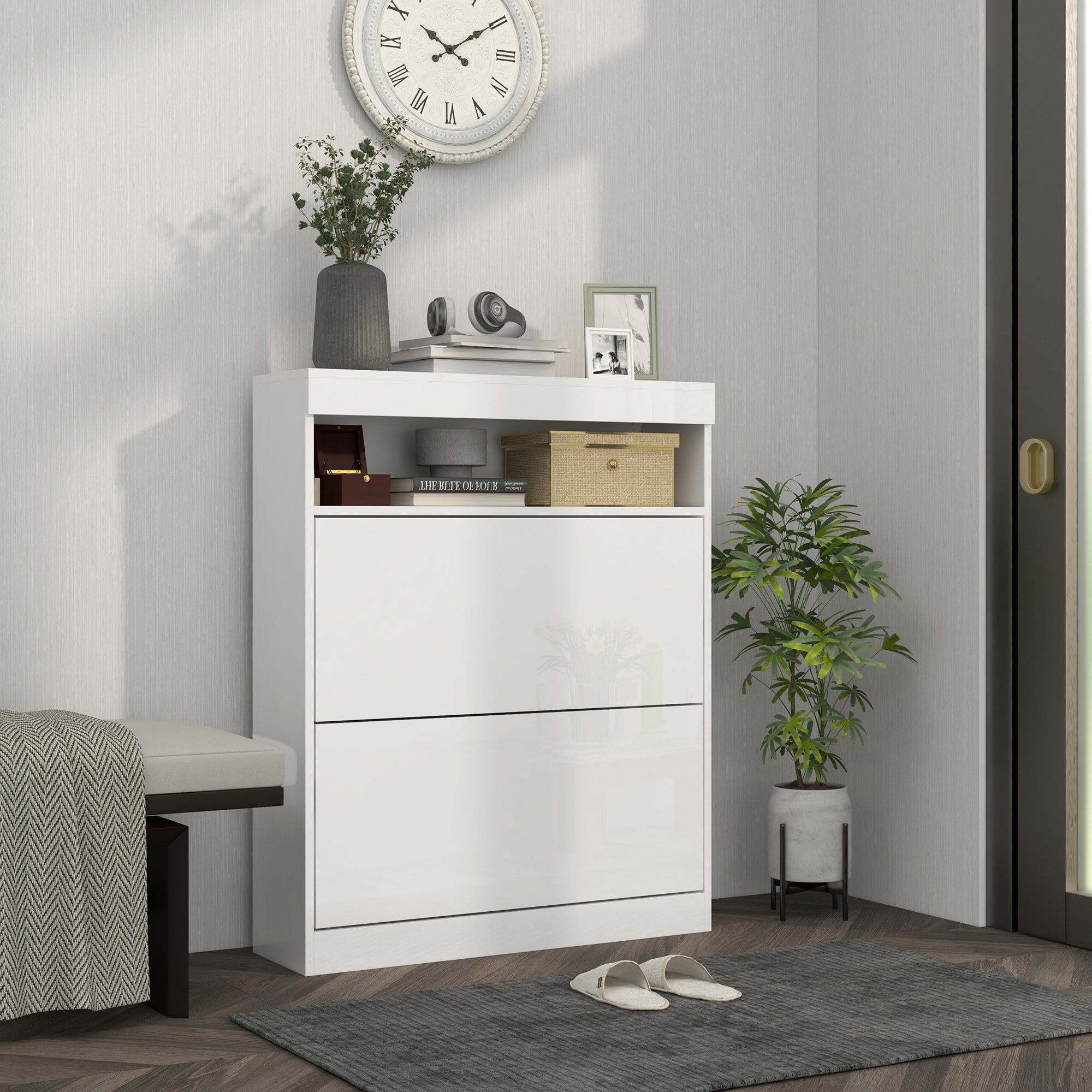 - Anti-tipping straps included to safely fix narrow shoe cabinet to a wall