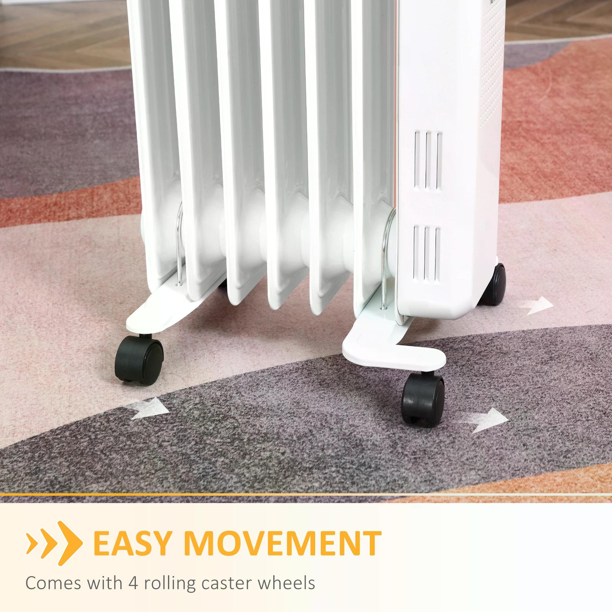 When the weather starts to turn icy, you will need this oil-filled radiator heater. Our HOMCOM oil-filled radiator with 7 heating pipes is perfect for keeping your bedroom, living room, home or office warm. Plus with three power settings, low, medium and high, you can find your preference temperature with total ease. The 360 degree wheels at bottom for easy movement. Don't let your fingers and toes freeze and trust in our oil heater to deliver warm heat from any room in the house.