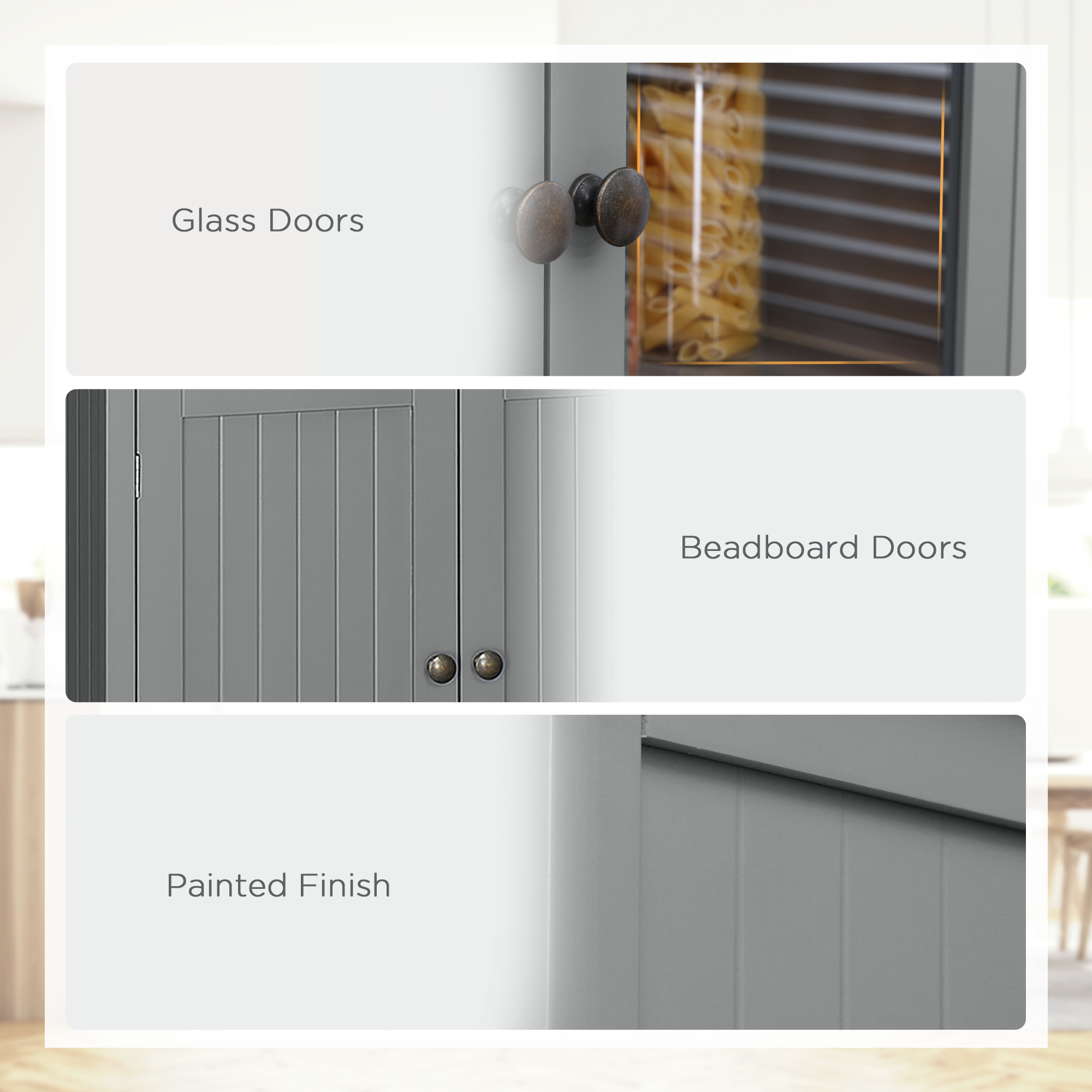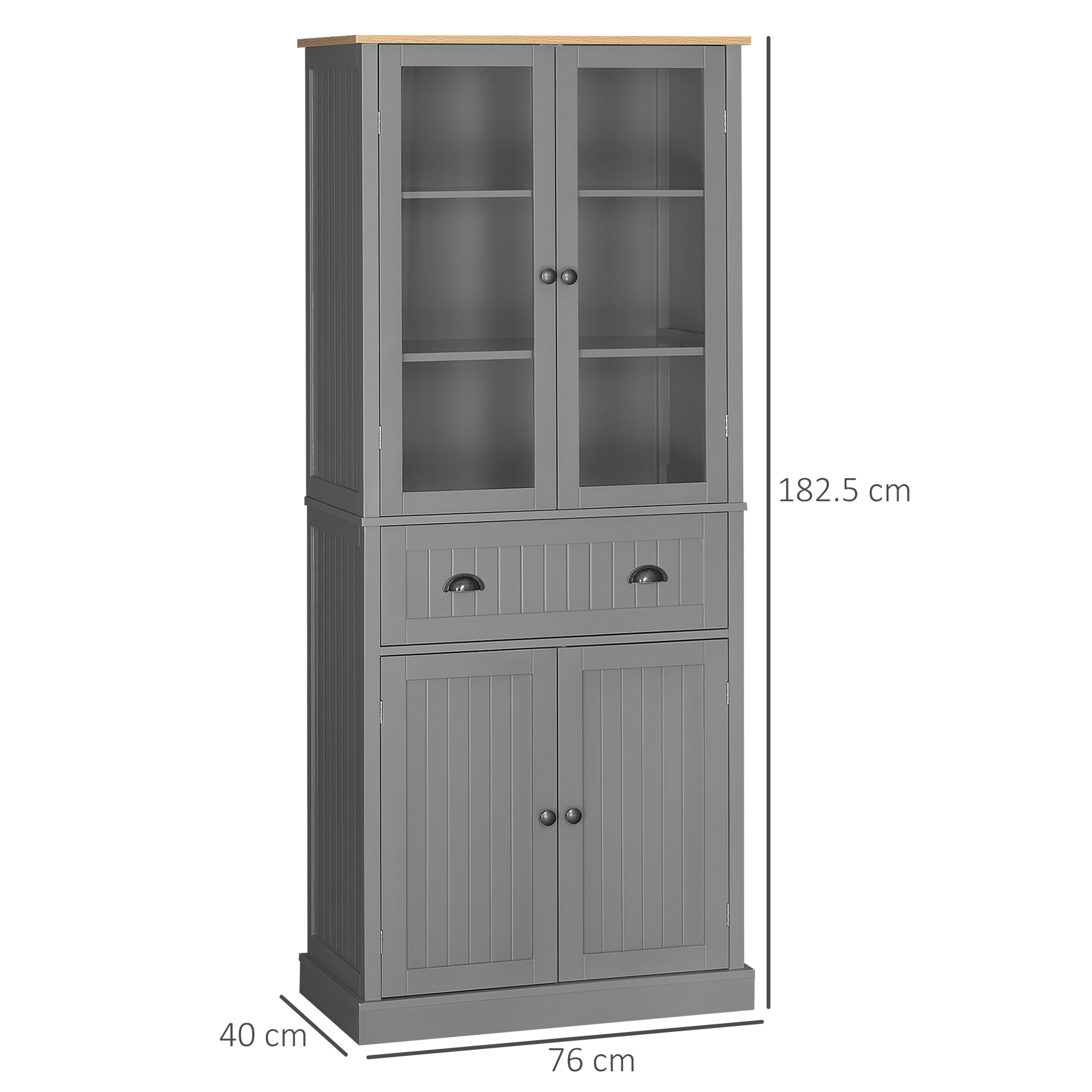 This HOMCOM Farmhouse kitchen storage unit transforms your kitchen from cluttered, to organised - in no time. It's formed of and upper and lower cupboard and middle drawer - so there's plenty of room for all the essentials. The glass accents on the upper cupboard add a sleek touch, whilst allowing you to see inside easily. Not just for the kitchen - you can use this pantry in the living room, hallway - or even the office.