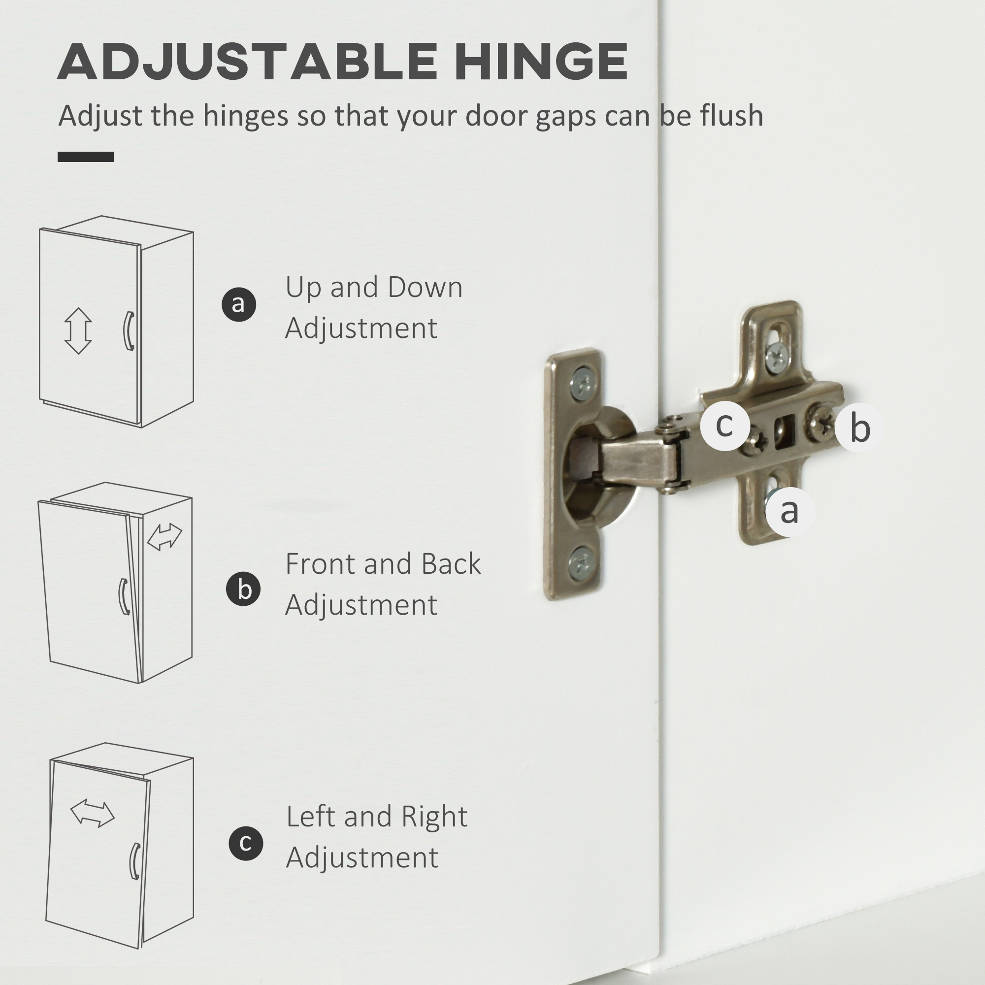 Organise your kitchen in a sleek and chic way, thanks to this freestanding kitchen cabinet from HOMCOM. It features a top and bottom cupboard, and a middle drawer to give plenty of room for crockery, silvers, boxes and more. The textured door panels and aluminium hardware adds plenty of character, finished with feet to keep this kitchen dresser balanced.
