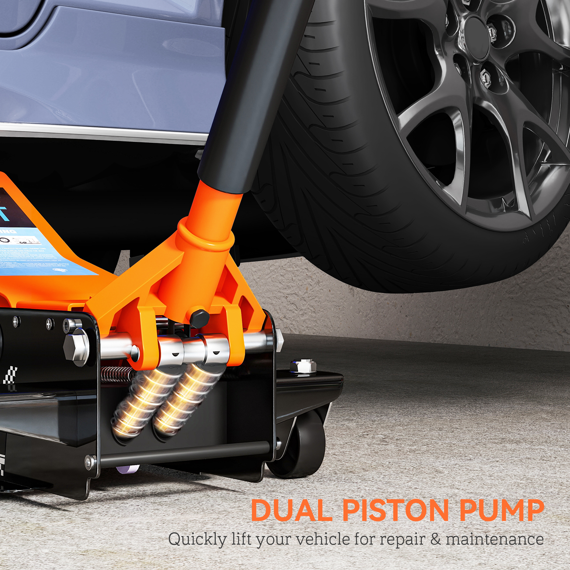 Simplify vehicle maintenance with the HOMCOM hydraulic trolley jack. Strong and versatile, this low-profile jack easily lifts cars, trucks and motorcycles from 7.5 to 47cm. Constructed with a solid steel frame and a rust-resistant finish, it's reliable for daily use. The dual piston pumps provide quick and smooth lifting. Whether in your garage or on the road, this jack makes it easy to handle car issues anytime, anywhere.