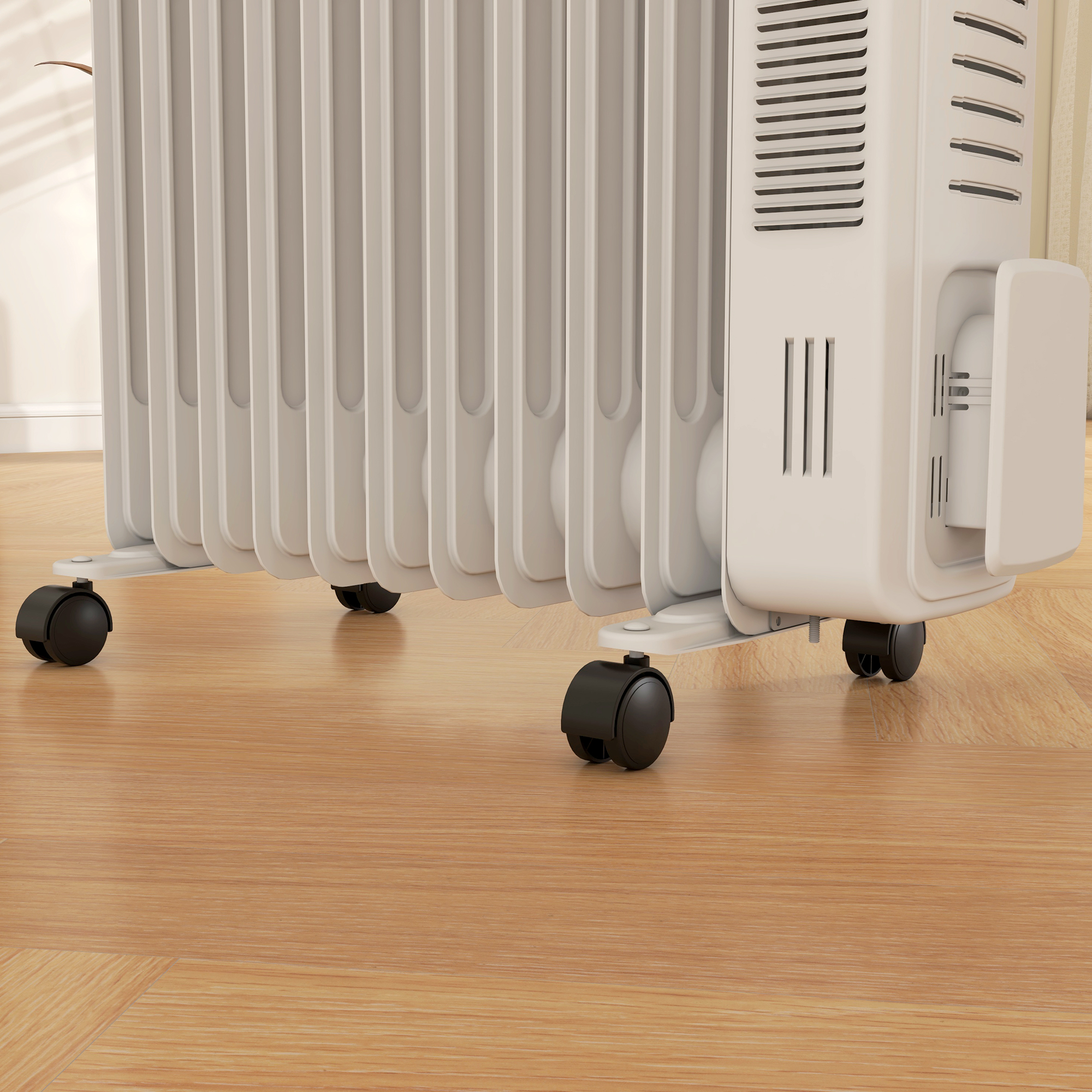 For fast, quiet and powerful heating, look to this HOMCOM oil-filled radiator. The 11-fin design provides plenty of heat, for 10-20㎡ sized spaces - keeping you warm and cosy. Thanks to the oil filling, this radiator heats up in 5-10 minutes - you won't have to wait long to heat up. Flick between 1000W/1500W/2500W, and set the temperature between 7-35℃: this portable radiator heater is a piece which customises to exactly how you want.