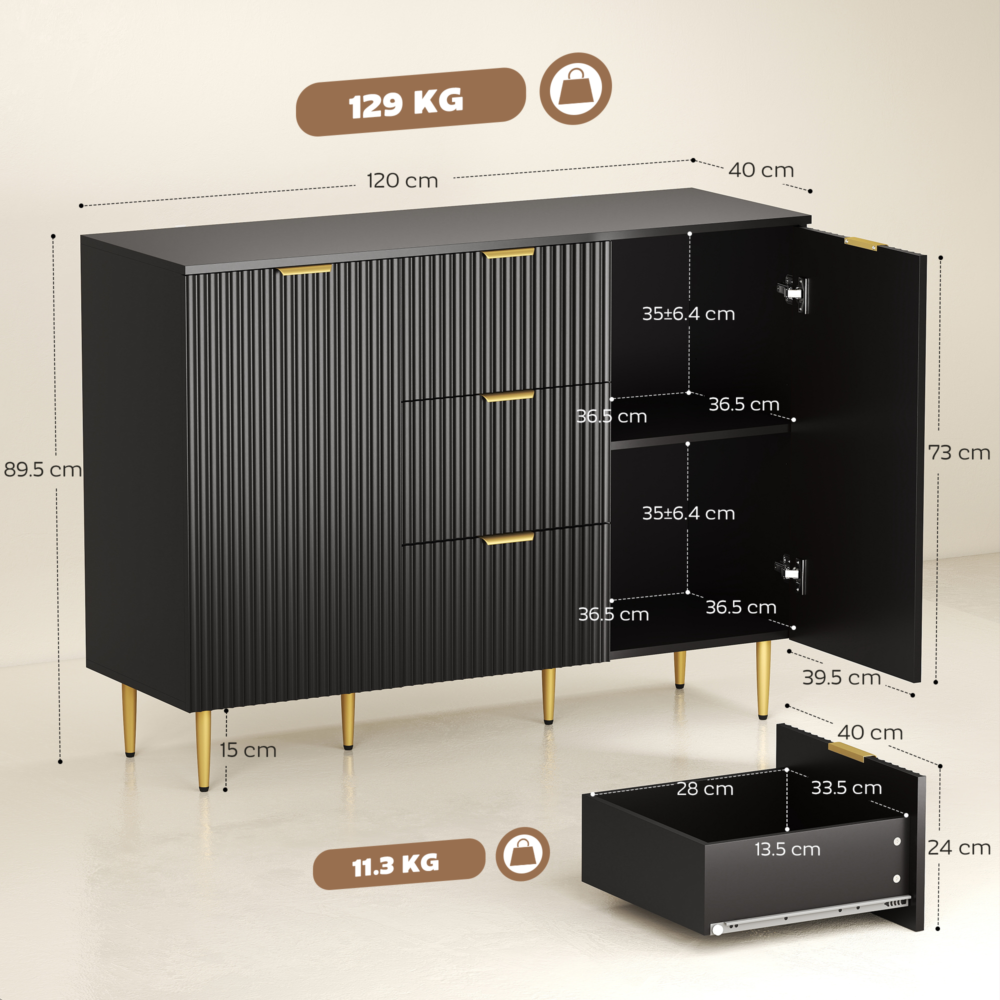 Transform your space with the HOMCOM kitchen sideboard, a versatile charmer that offers lots of storage with three drawers and two roomy cupboards. Adjust the inner shelves across three levels to fit everything from your living room sideboard essentials to kitchen pantry goods. Plus, it stylishly supports up to a 55-inch TV, making it a chic entryway or display cabinet too!