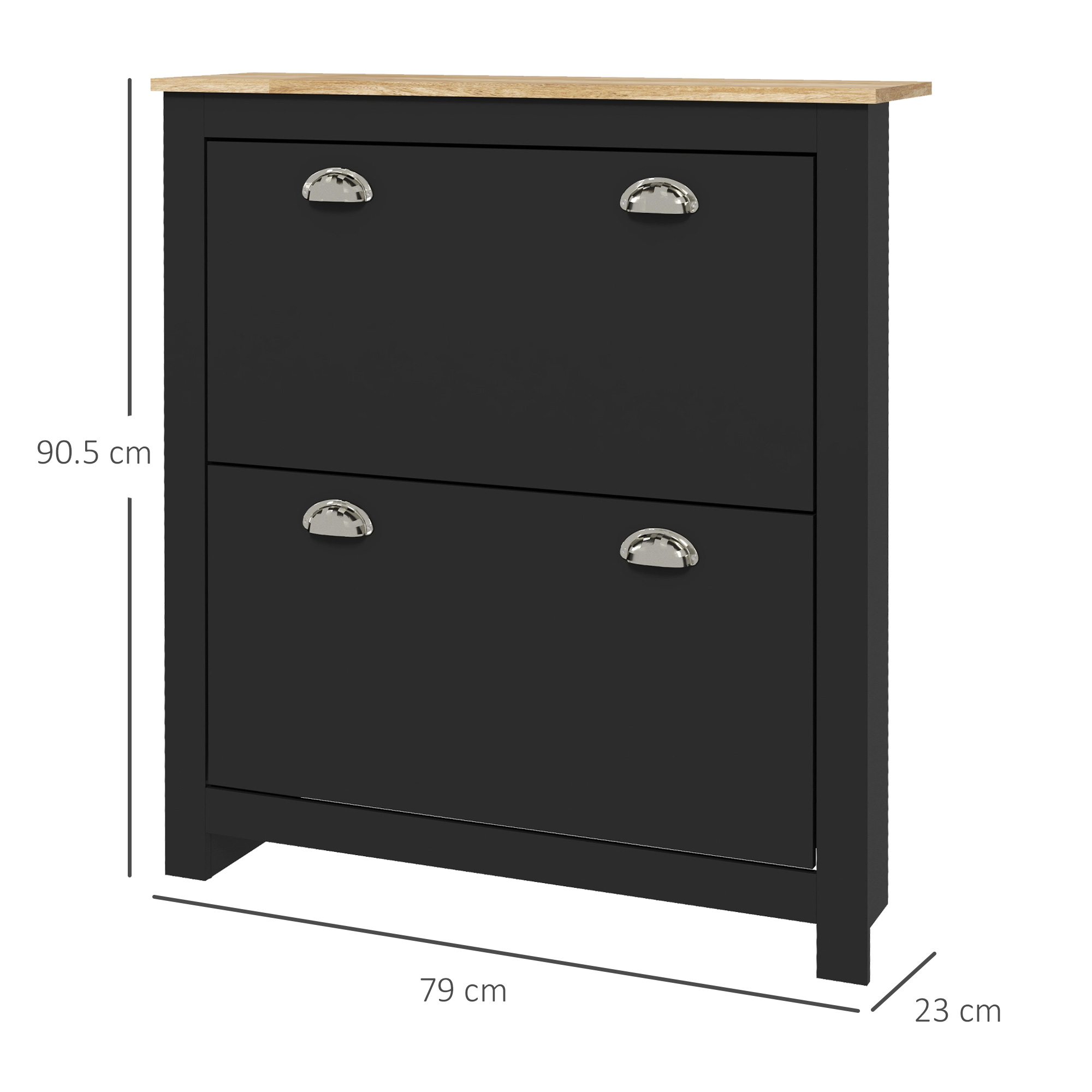 - Two tipping drawers, each with an adjustable shelf - holds six shoe pairs each (no larger than UK 10)