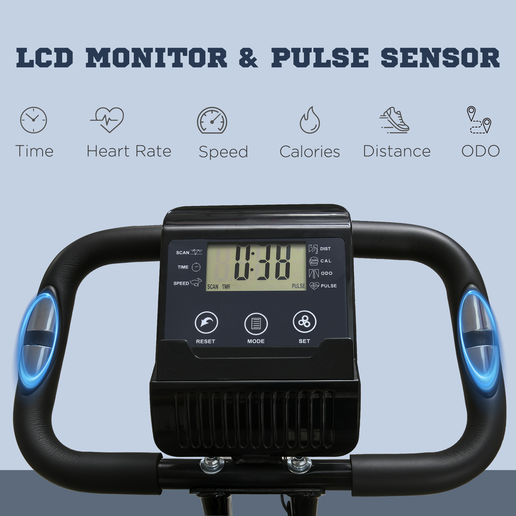 - LCD Monitor: Track time, speed, distance, burned calories, heart rate
