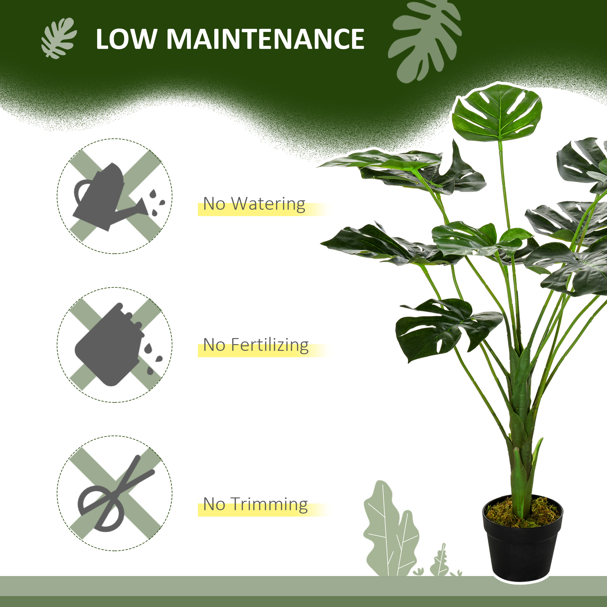 - Monstera plant design, with 13 bendable leaves for a full look